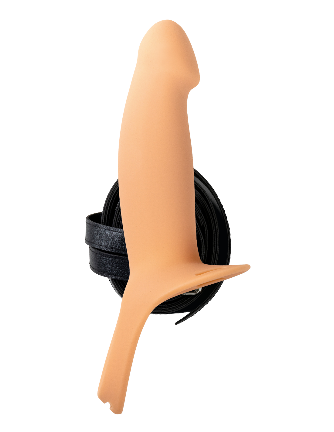 Arnés hueco para colocar el pene en su interior fabricado 100% en silicona. Gracias a su tacto suave, se sentirá como una verdadera penetración. Además, incorpora una cavidad para insertar los testículos para una mayor sujeción.