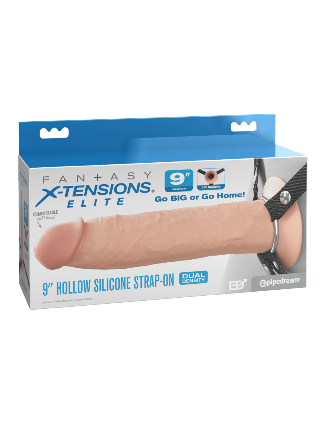FANTASY X-TENSIONS ELITE 9 PULGADAS DE SILICONA HUECA CON CORREA DE DOBLE DENSIDAD
