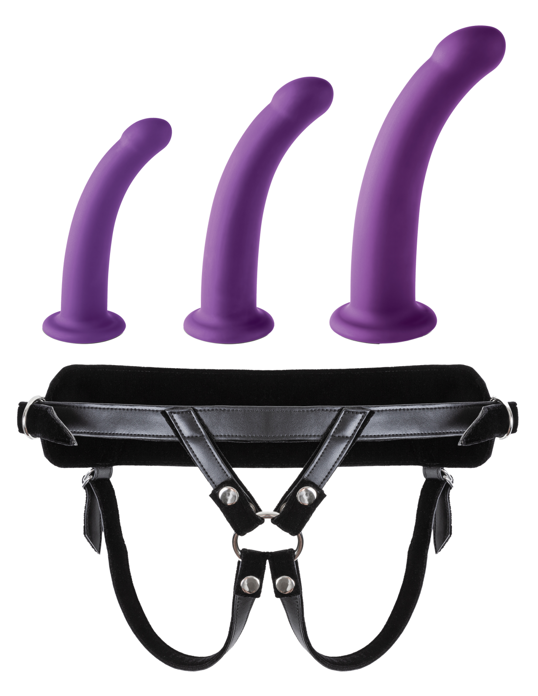 Tú eliges quién tiene el poder: ¿ella, él o ambos? Este arnés con varios consoladores te hará brillar como nunca antes gracias a su suavidad y su forma curva. Elige el tamaño que quieras en cada momento.