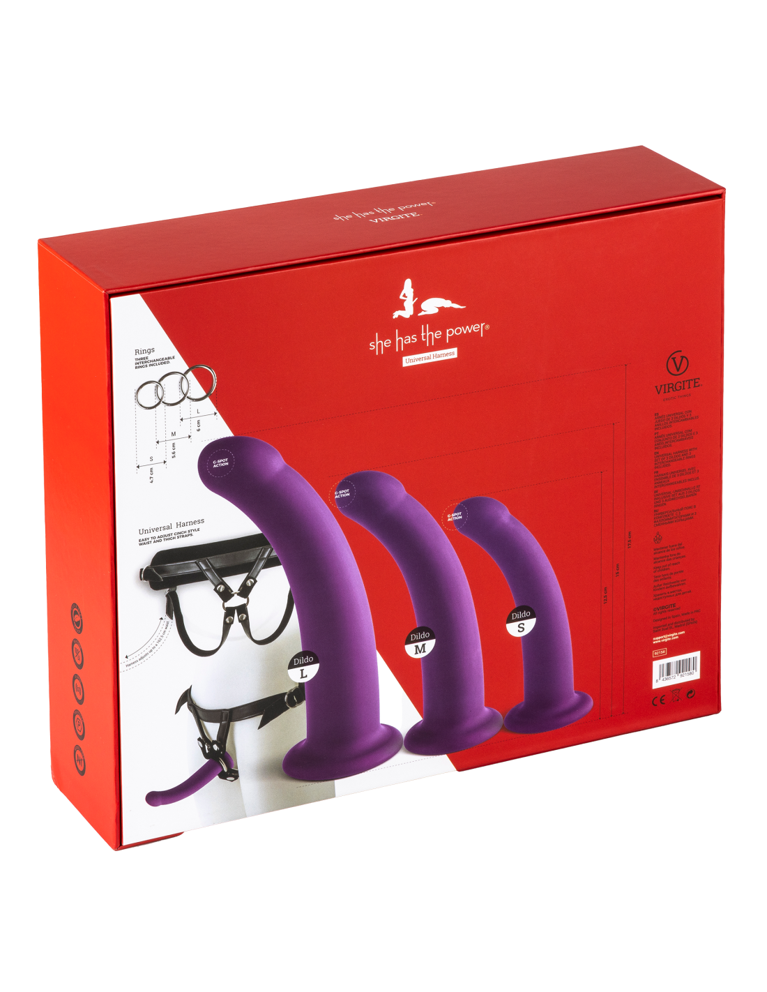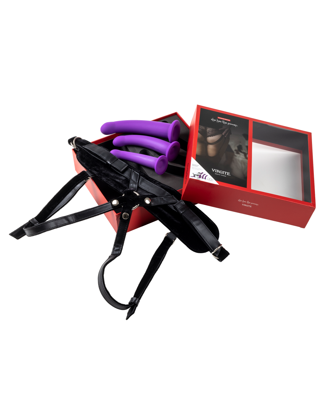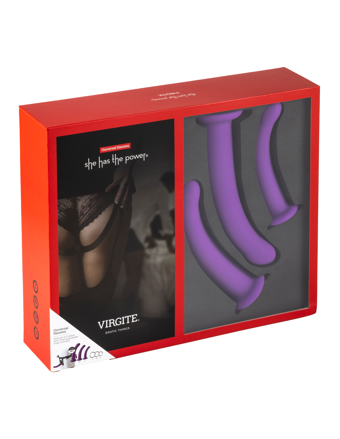 VIRGITE ARNÉS UNIVERSAL CON JUEGO DE CONSOLADOR MORADO TALLAS S M L MORADO