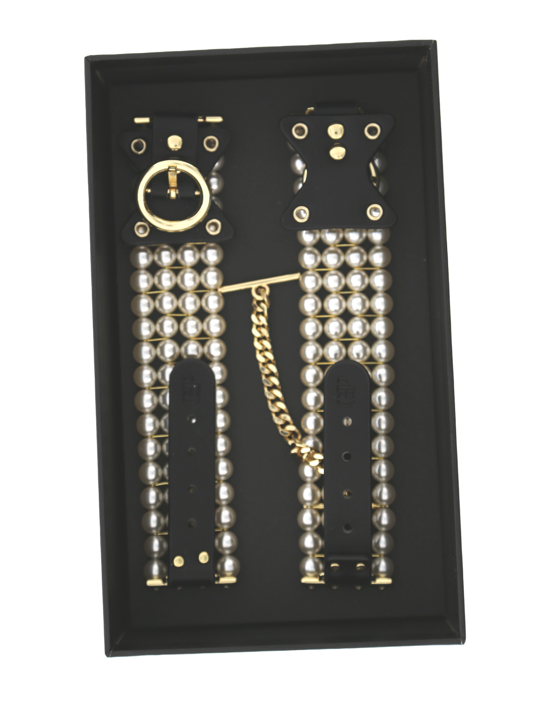 Las esposas Soirée Pearl son una exquisita mezcla de moda y fetiche, que ofrece una versión sofisticada de la moderación lúdica. Diseñados para pasar sin esfuerzo de un accesorio refinado a un artículo de juego íntimo, estos puños son tan versátiles como visualmente llamativos.