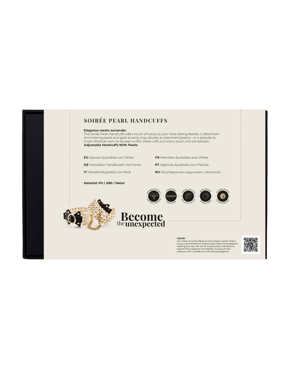 Discretas pero impactantes, las esposas Soirée Pearl están dirigidas a los consumidores que aprecian la sutileza en sus accesorios eróticos. Ideales para combinar con lencería, ropa de noche o como parte de un elegante conjunto inspirado en el bondage, invitan a la exploración mientras mantienen la elegancia y el control.