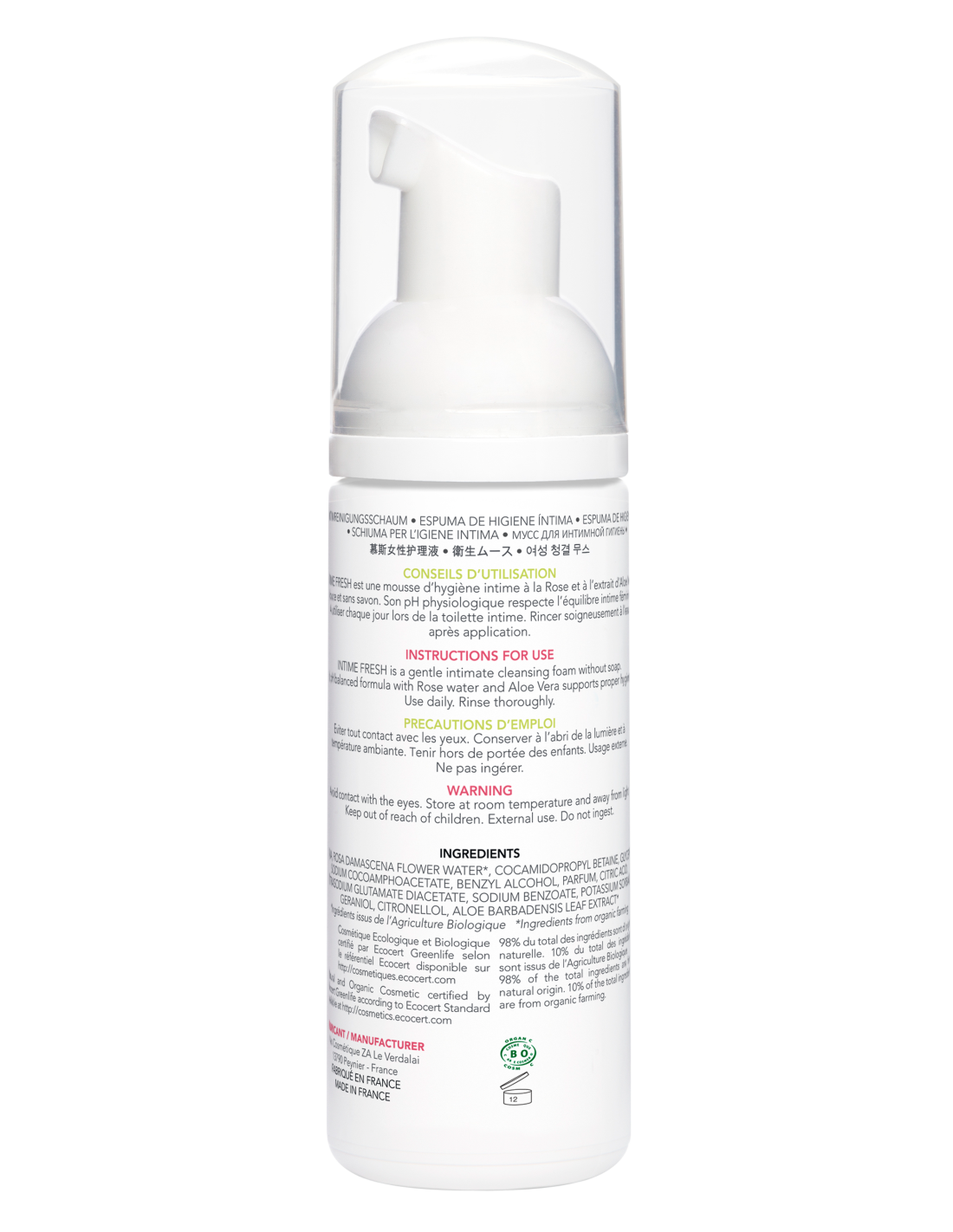 ¡Siéntete fresco y huele hermoso! Esta espuma limpiadora ha sido desarrollada para uso diario en la higiene personal. Con agua de rosas orgánica y aloe vera orgánico por sus propiedades calmantes y curativas, este suave limpiador en espuma limpia suavemente.