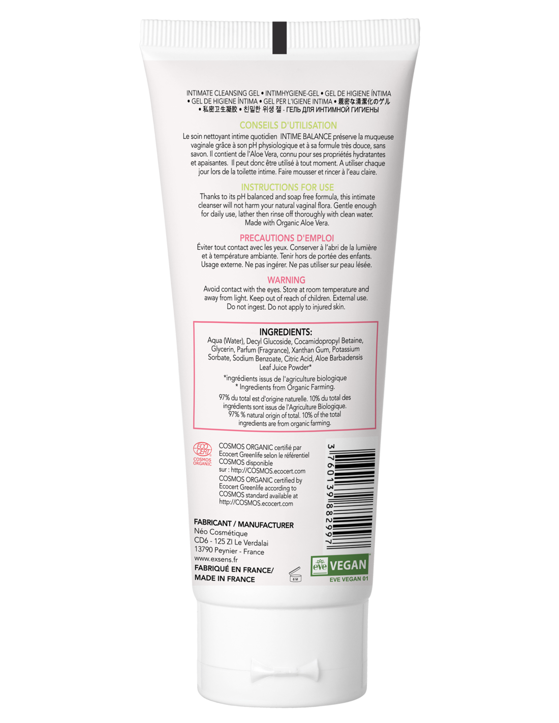 ¡Siéntete fresco y huele hermoso! Este gel limpiador íntimo ha sido desarrollado para uso íntimo diario. La fórmula contiene Aloe Vera orgánico conocido por sus propiedades calmantes e hidratantes. Textura muy agradable para el uso diario.