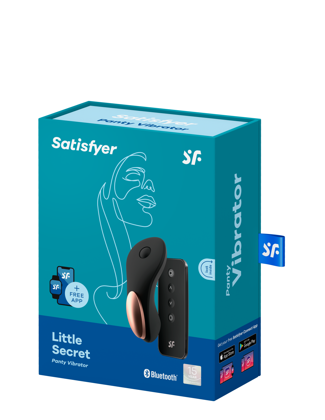 ¿Sabías que es posible burlarte de ti mismo en cualquier momento del día? Gracias al control remoto adicional, el Little Secret puede permanecer perfectamente guardado en tu braga mientras exploras todas sus tentadoras vibraciones. Pero espera, se vuelve aún más fácil... usa Satisfyer Connect, la aplicación innovadora y su gran cantidad de funciones, como control remoto para tu nueva vibra.