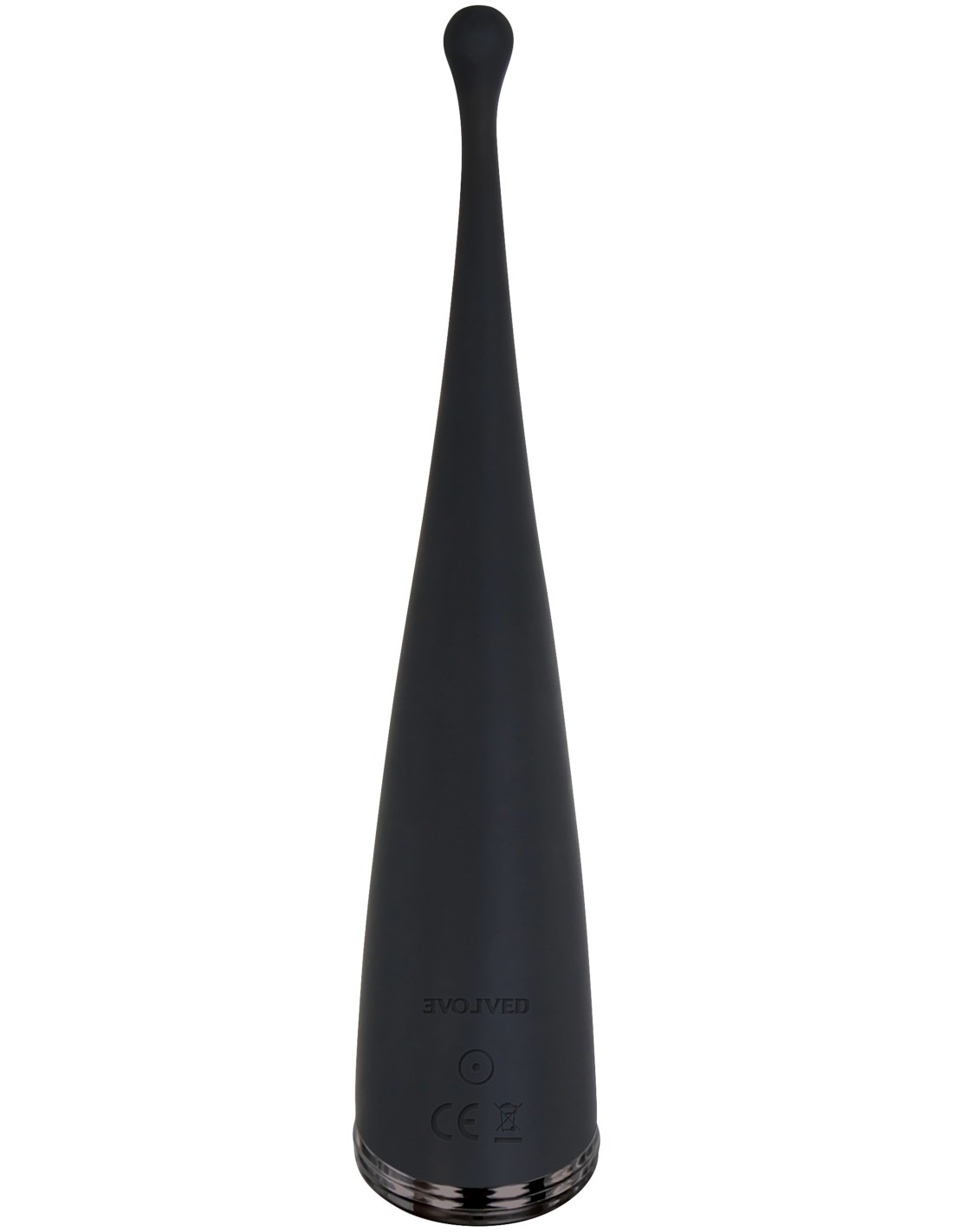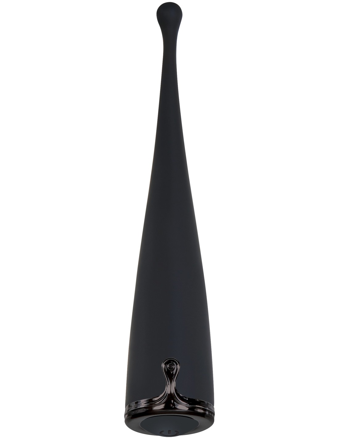¡Bienvenido al futuro de la estimulación del clítoris! Este vibrador de precisión se parece tanto a un dispositivo de alta tecnología con su elegante forma negra y su elegante base cromada que podrías sacarlo de tu bolso en una reunión de trabajo sin que nadie pestañee, pero está diseñado para ser un micro vibrador erótico. ¡Varita que apunta sin esfuerzo a tu zona erógena principal! De hecho, puedes colocarlo en cualquier parte de tu cuerpo que elijas para sentir poderosas vibraciones concentradas en un elegante punto de lágrima y llevarlo bajo el agua, ya que es completamente sumergible. ¡Descubre tu punto de placer con el juguete especialmente diseñado para excitarlo!