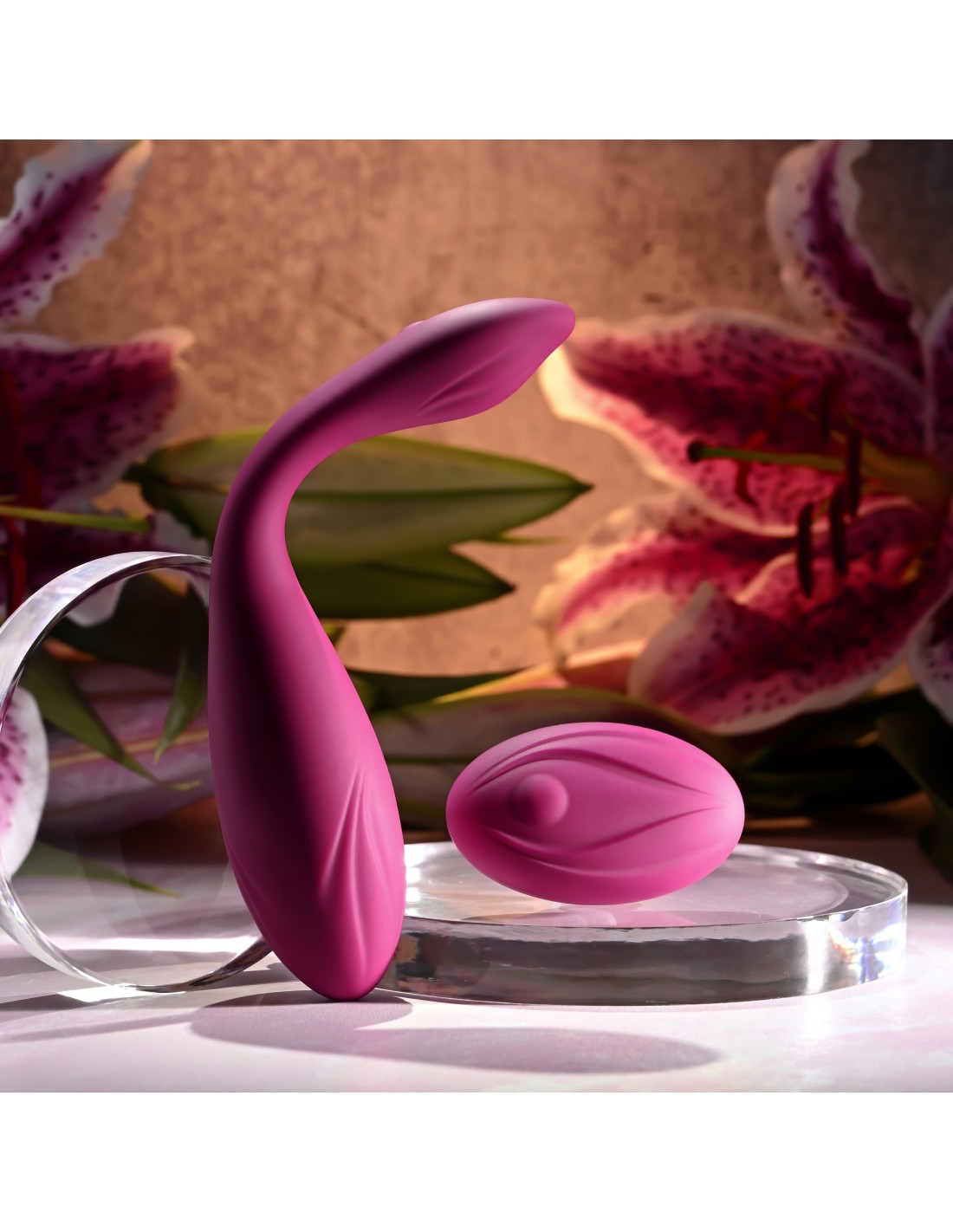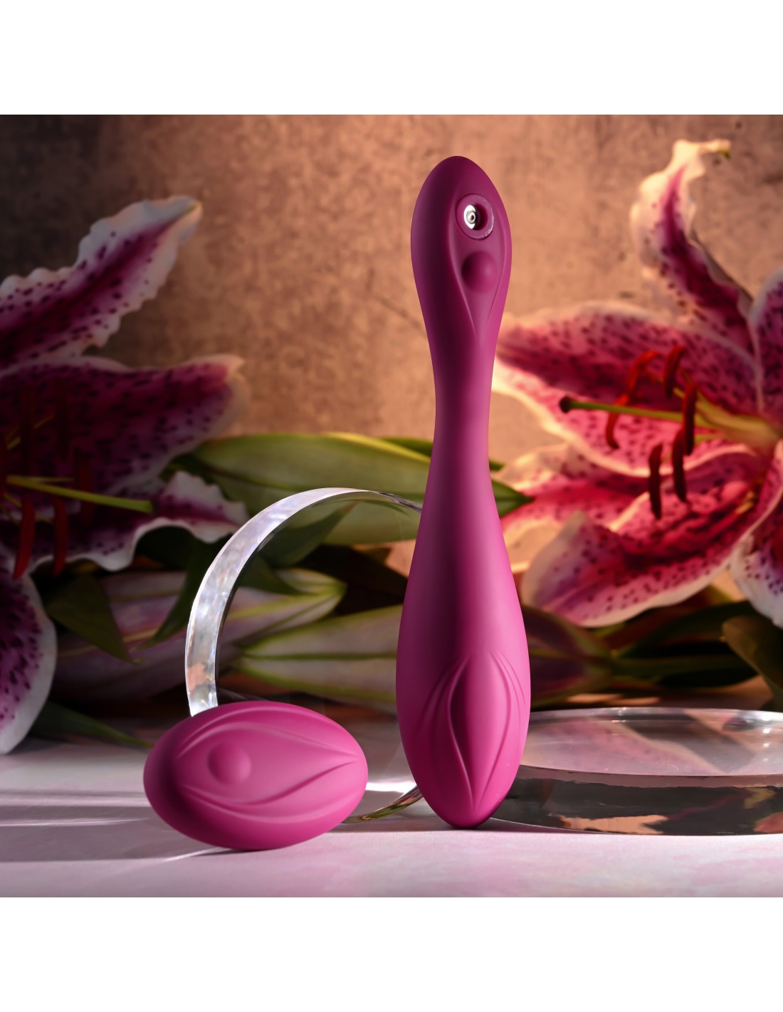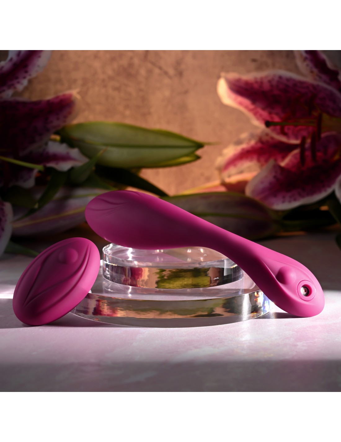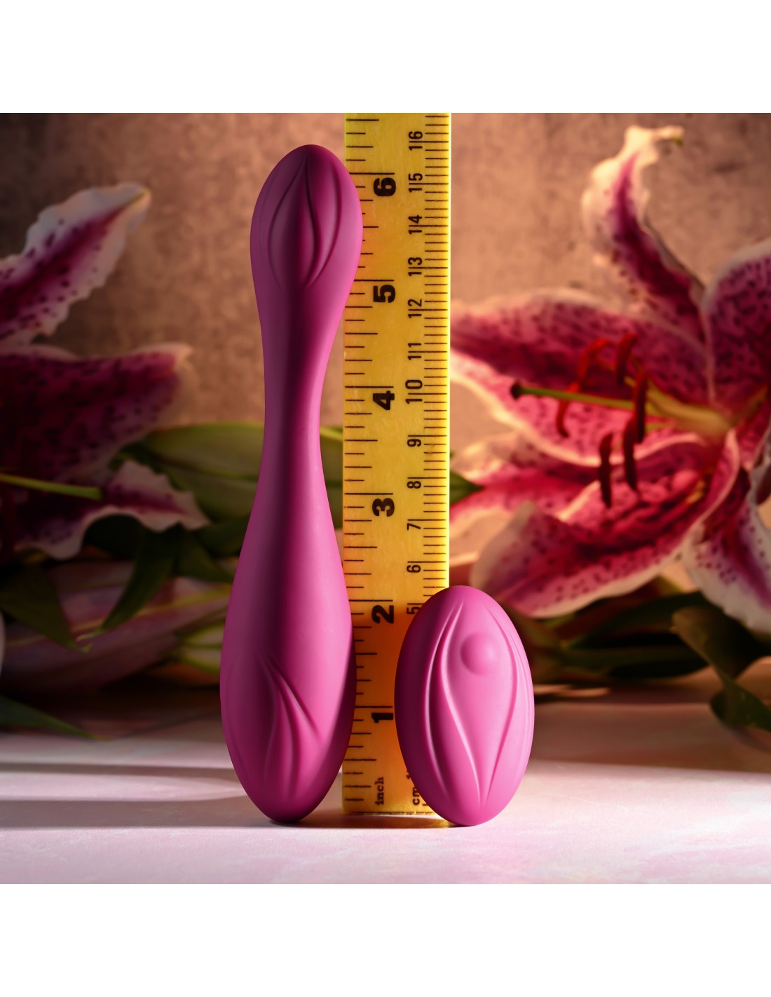 Adopta una pose de cereza con este vibrador flexible y articulado que se mantiene tal como lo doblas. Poderosas vibraciones emanan de cada cabeza texturizada simultáneamente para brindarle el doble de placer sin importar la curva que elija. Un extremo se hincha hasta convertirse en una circunferencia bulbosa con una punta cónica, mientras que el extremo más pequeño tiene forma ovalada con una protuberancia central. Comparta su experiencia o hágalo manos libres con el control remoto de rango de 30 '.