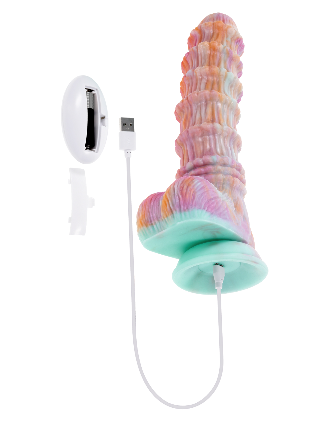 Descubre profundas vibraciones cósmicas con este juguete grande, grueso y flexible que le da un significado completamente nuevo a las "comodidades". Fabricado con silicona multicolor inusualmente texturizada y segura para el cuerpo, este vibrador inspirado en la fantasía tiene 8 anillos graduados en su shaft, bolas texturizadas y una poderosa base de ventosa para un placer de manos libres fuera de este mundo. ¡Prueba el modo Turbo para enviar tu orgasmo a la estratosfera!