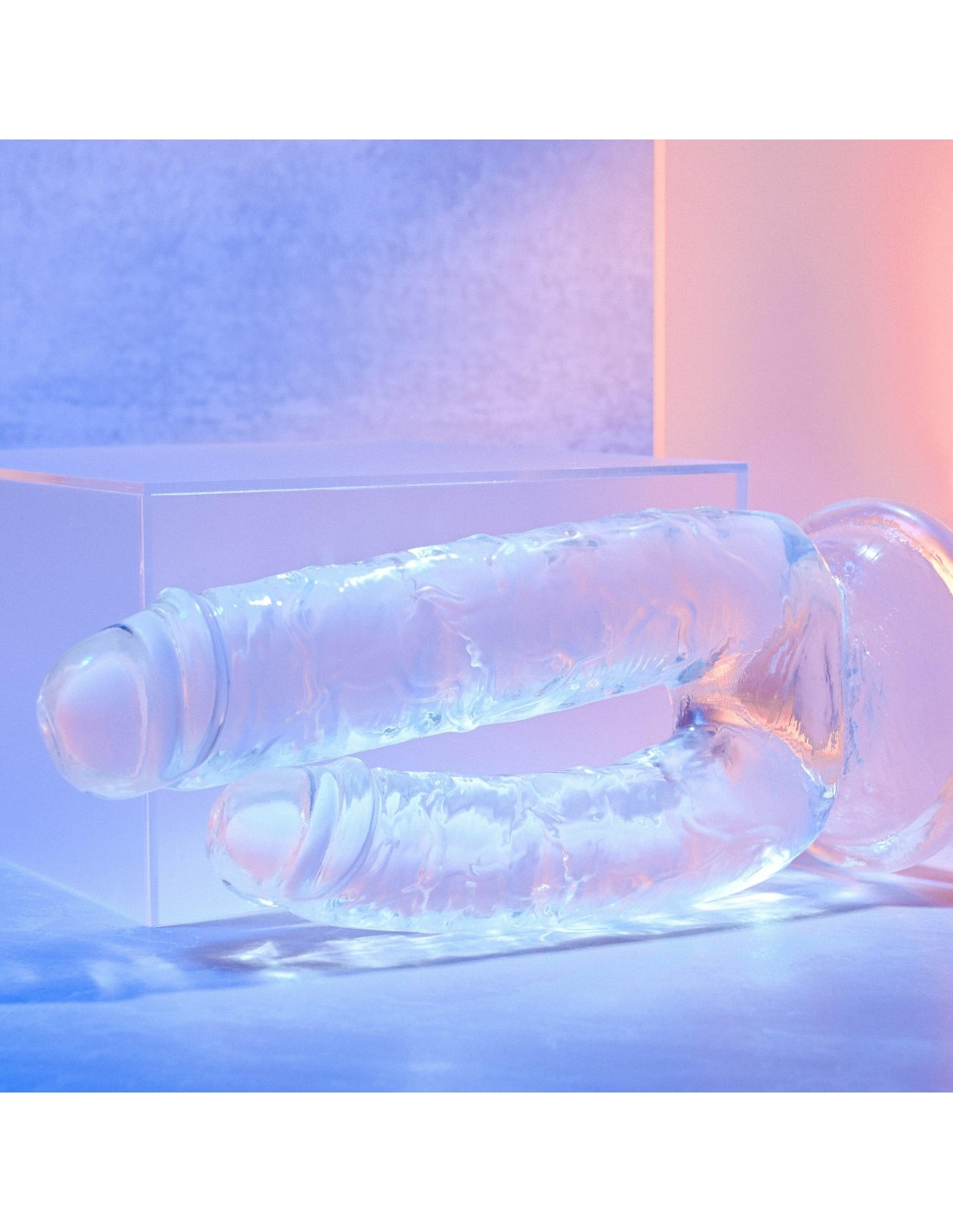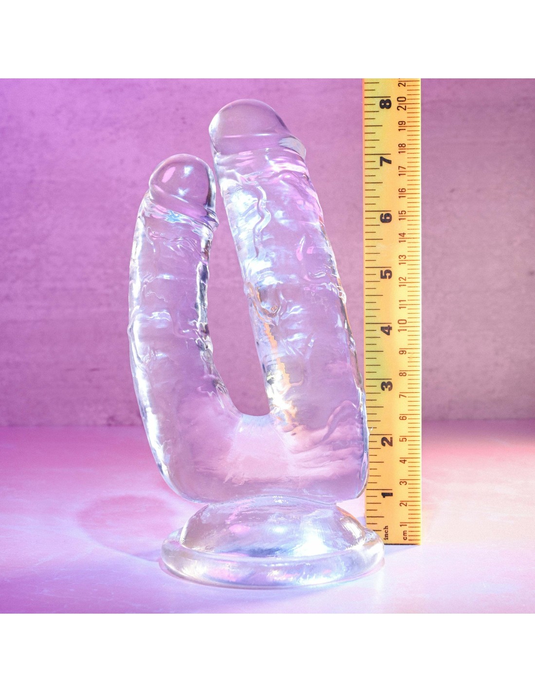 Este consolador cristalino de doble eje presenta dos tamaños únicos que se flexionan y doblan para crear múltiples posibilidades. El eje vertical y más grueso es perfecto para una satisfacción profunda, mientras que la opción curva más delgada funciona para lugares más difíciles de alcanzar, ¡o lo que sea que tu imaginación tenga en mente! Úselo uno a la vez o ambos, con o sin pareja, ¡lo que le parezca adecuado para su máximo placer! La poderosa base de ventosa se adhiere a cualquier superficie limpia y seca para un juego erótico con manos libres, y el TPE transparente seguro para el cuerpo crea una visibilidad sorprendente.