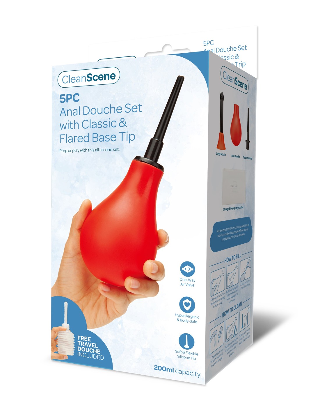 Obtenga la máxima limpieza en preparación con este juego completo de 5 piezas que incluye dos opciones de duchas vaginales seguras para el cuerpo para satisfacer todas sus necesidades. La pera de silicona reutilizable cuenta con una válvula unidireccional para garantizar una experiencia sin complicaciones y un exterior suave y comprimible.