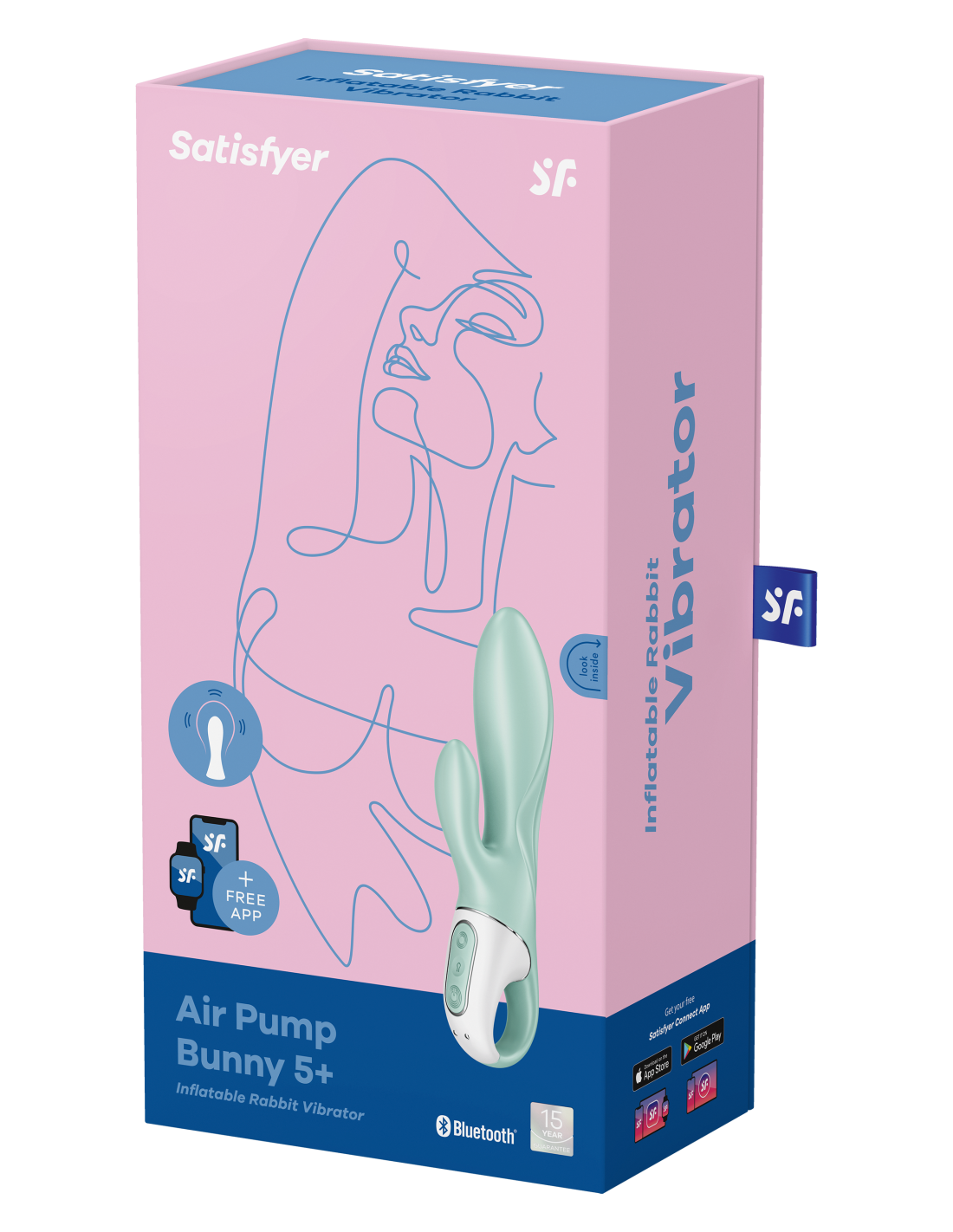 Una bomba poderosa... La aplicación Air Pump Bunny 5 Connect es un vibrador de conejo inflable y versátil que está aquí para satisfacer. Con un mango en forma de bucle para un uso fácil, un eje inflable para una estimulación específica del punto G y un estimulador de clítoris adicional, ¡experimente sensaciones de llenado como nunca antes! Ideal para buscadores de placer experimentados, los intensos y potentes motores y el mayor diámetro del eje inflable no dejan nada que desear. El eje es firme e inflexible, pero una vez inflado, la superficie de la punta es ligeramente maleable. Arriésgate y personaliza el inflado para que se ajuste perfectamente a tu cuerpo, ya que la aplicación Air Pump Bunny 5 Connect está diseñada para aumentar lentamente el nivel de intensidad y tamaño. Si no estás de humor para disfrutar de la sensación máxima, también puedes utilizar fácilmente la aplicación Air Pump Bunny 5 Connect como un vibrador normal. Con Bluetooth habilitado, la aplicación Air Pump Bunny 5 Connect se conecta a la galardonada aplicación gratuita Satisfyer Connect, lo que le brinda la opción de tener un control total del potente motor y personalizar verdaderamente su placer. Se infla en menos de 12 segundos y se puede ajustar fácilmente durante el proceso de llenado. La aplicación Air Pump Bunny 5 Connect está hecha de silicona segura para el cuerpo y es recargable. ¡Bombea!