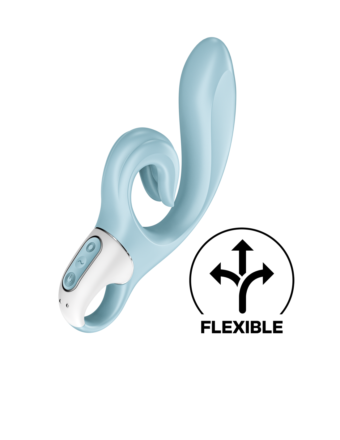 Este vibrador combina y estimulación vaginal con intensas vibraciones. Dos potentes motores accionan el vibrador Rabbit, ideal para la estimulación del punto G gracias a su forma curva. Los lados del eje ancho están aplanados, mientras que el estimulador curvado estimula el clítoris desde arriba. Esto asegura una estimulación más intensa de tu perla del placer. El diseño ondulado del estimulador proporciona una estimulación adicional del clítoris.