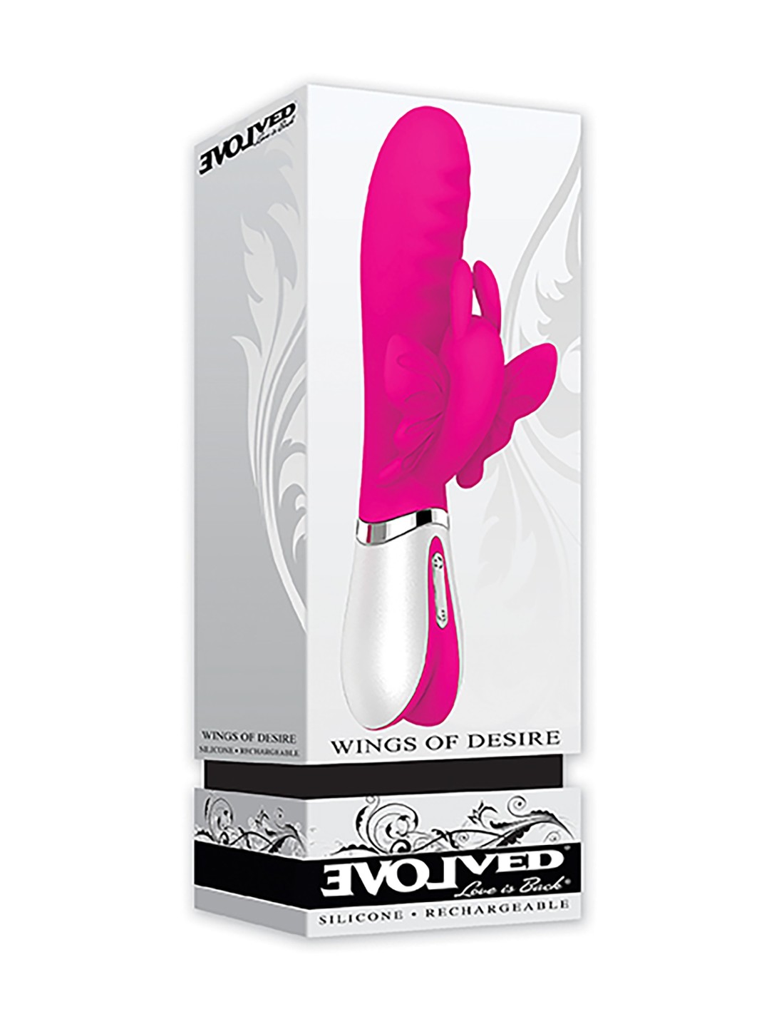 Este vibrador de silicona de doble motor te permite emprender un viaje hacia la felicidad pura con alas que aletean y zumban al ritmo perfecto para llevarte al límite. Las crestas de sensación en la parte inferior del eje le brindan un empujón adicional, mientras que las siete funciones le permiten controlar la intensidad y el patrón de su experiencia con un control sensato de un solo toque. Vuela con seguridad en el baño o la ducha, ya que este juguete es completamente impermeable y sumergible, y se limpia fácilmente con un limpiador de juguetes y un enjuague con agua tibia.