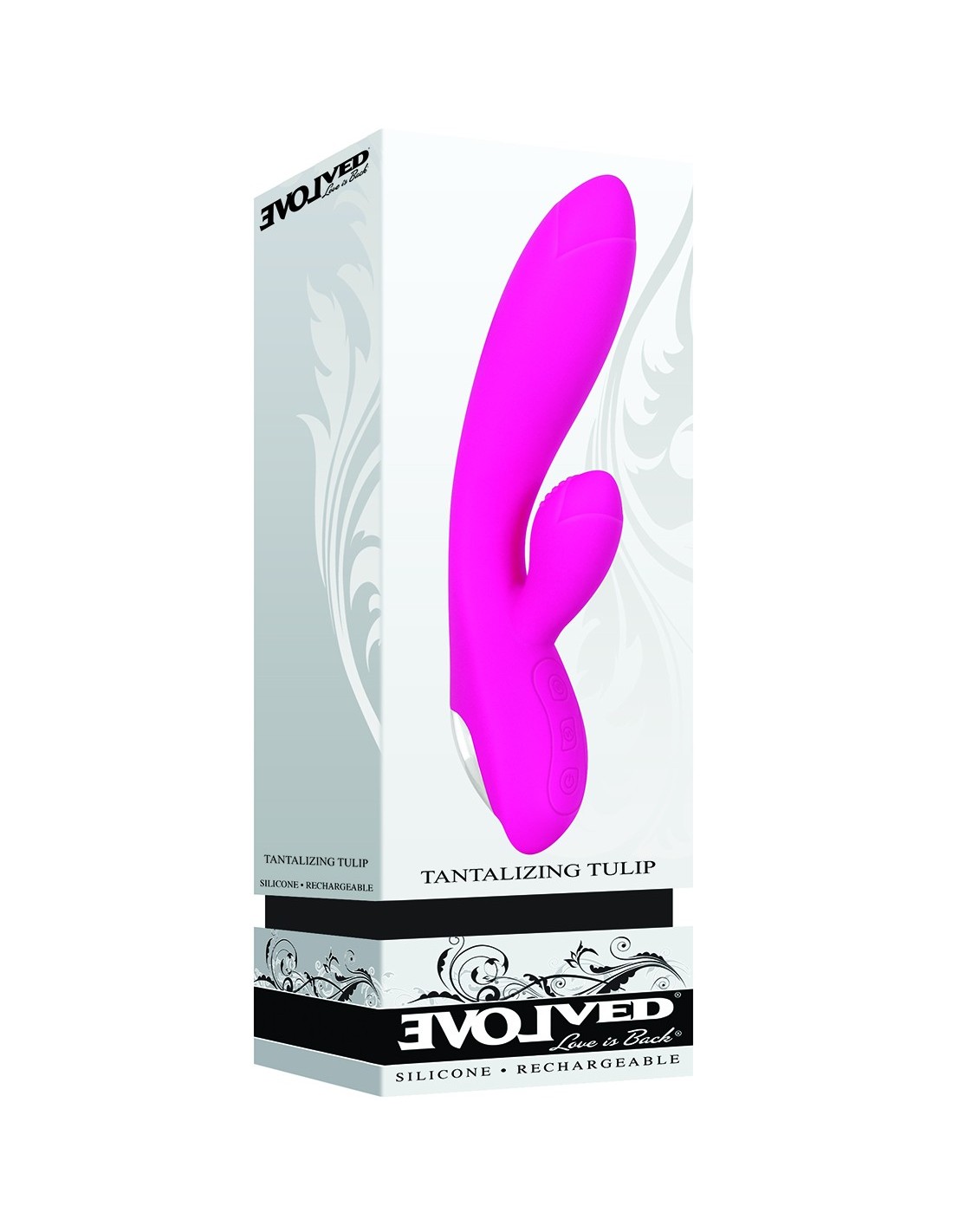 No hay nada tan erótico como una flor en flor, que es la inspiración para esta poderosa vibración que cuenta con 64 combinaciones de vibración y funciones en dos motores separados. Tanto el estimulador del eje como el del clítoris tienen puntas en forma de tulipán que hacen cosquillas y provocan suavemente, y el estimulador texturizado agrega un impulso adicional de excitación. Hecho de lujosa silicona segura para el cuerpo, este juguete también es completamente impermeable y sumergible, ¡así que deja que tu juguete florezca contigo en el baño o la ducha! Limpia en un instante con un limpiador de juguetes y un enjuague con agua tibia.
