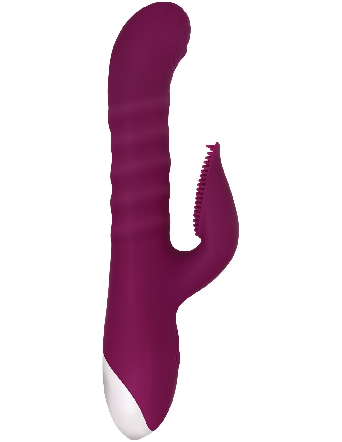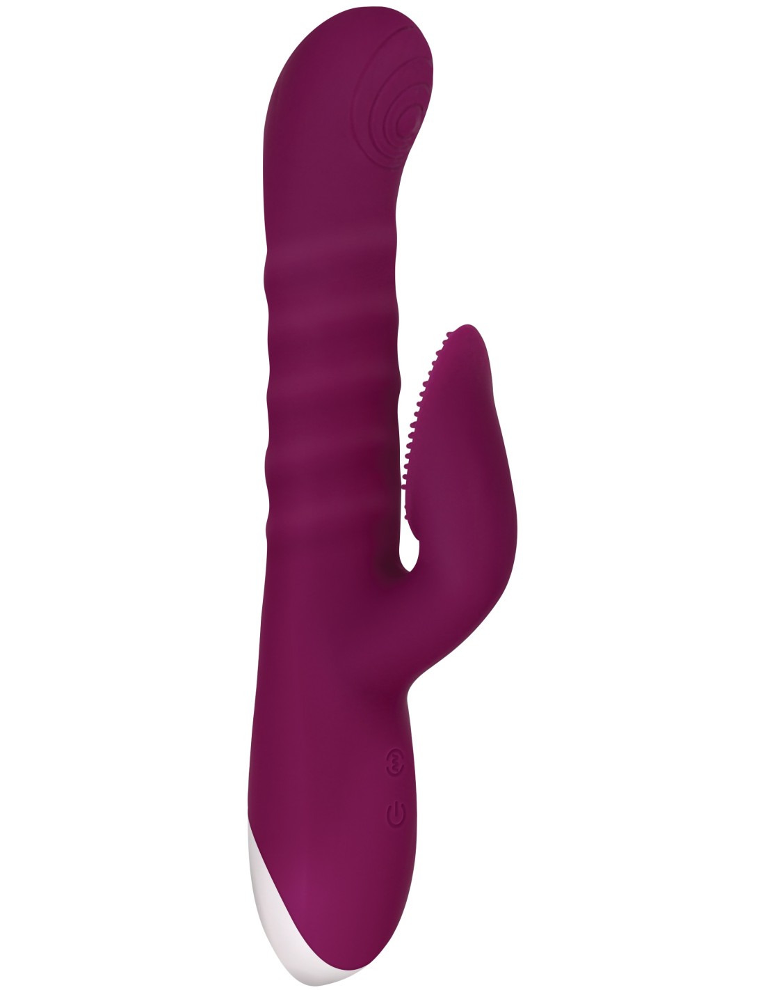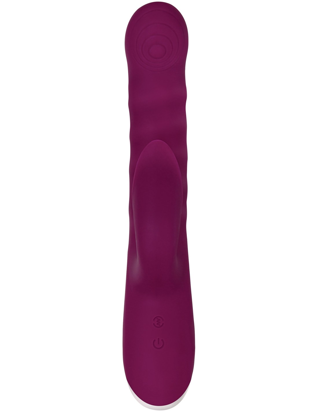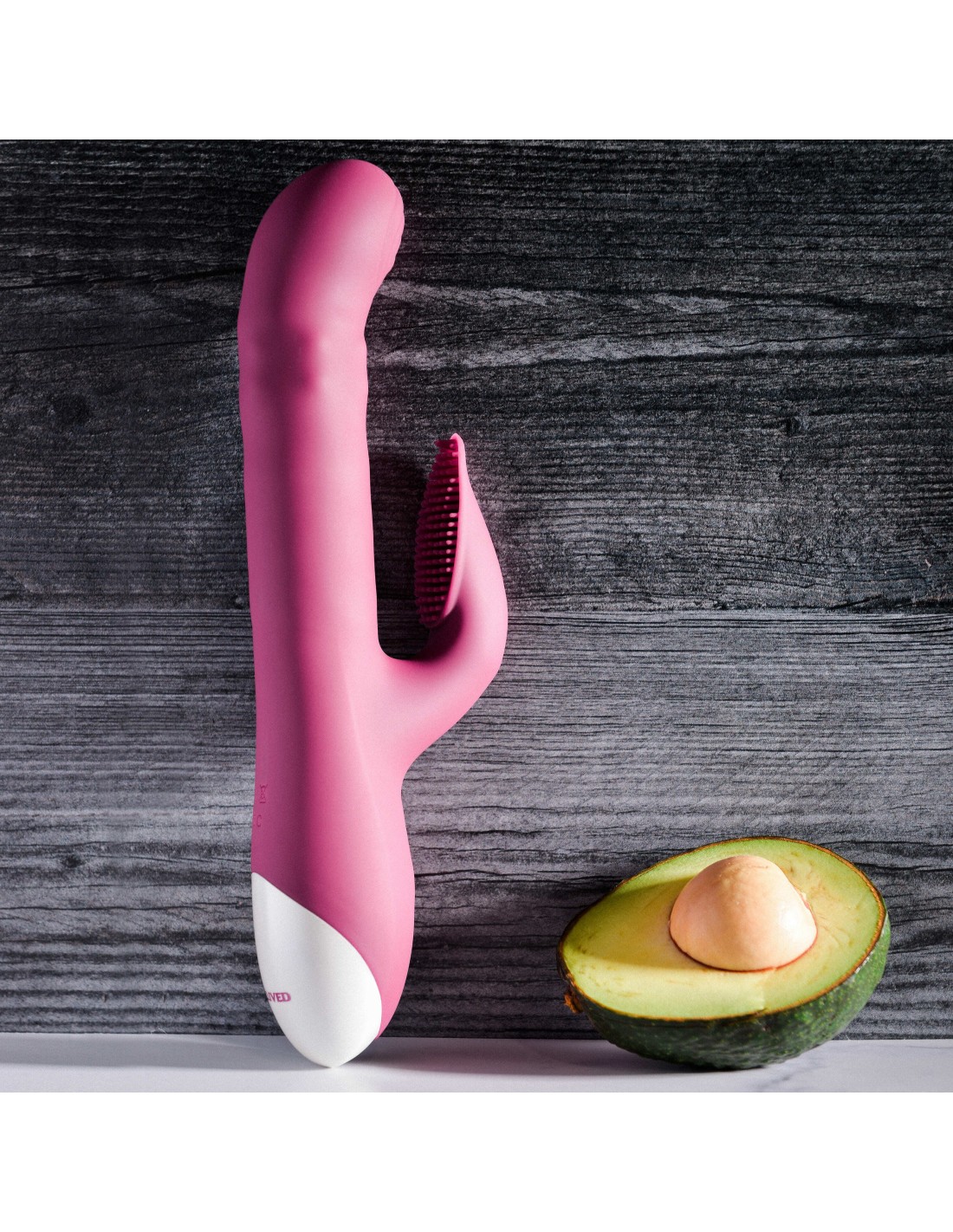 ¡Satisfaga múltiples antojos de placer a la vez! Dos potentes motores ofrecen una extraordinaria combinación de sensaciones: empuje, giro, vibración interna y externa, sin mencionar las temblorosas protuberancias que bailan por toda la plataforma del eje del clítoris. Elija entre 3 velocidades de empuje y giro, y ajuste el eje del clítoris de 10 velocidades para encontrar la combinación perfecta que haga realidad sus fantasías de rizar los dedos de los pies, incluso bajo el agua, ya que es completamente sumergible. Limpiar con un limpiador de juguetes y enjuagar con agua tibia.