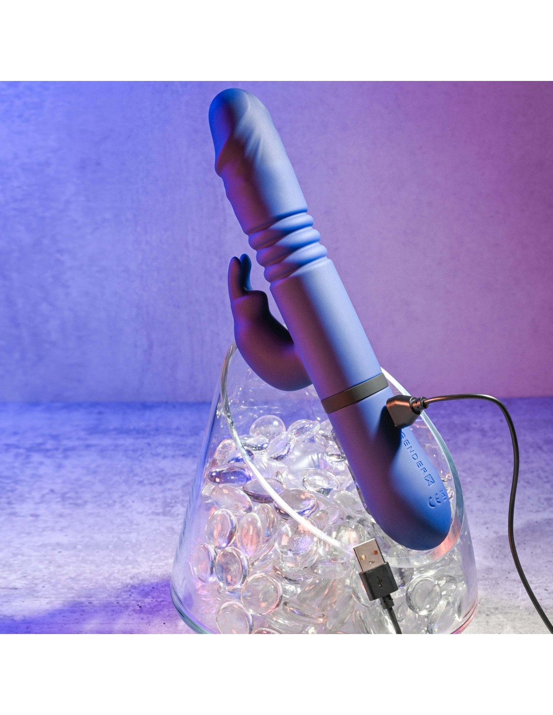 ¡Esta vibración de conejo alta y suave está lista para empujar toda la noche! Con una punta texturizada flexible y un centro en forma de acordeón que se estira hacia adentro y hacia afuera, te sorprenderá la apariencia y la sensación de la poderosa función de empuje. Pero esta gran forma totalmente sumergible tiene algunos secretos más bajo la manga: un poderoso eje de conejo cuyas orejas de conejo simplemente no se rinden, y cuentas giratorias en el eje que se agitan y giran con un ritmo erótico perfecto para cualquier masaje. Entre el empuje, la rotación y las poderosas vibraciones, te dirigirás a una experiencia alucinante en poco tiempo, especialmente con los controles ergonómicos que te permiten personalizar a medida que avanzas. ¡Totalmente recargable y fácil de limpiar!