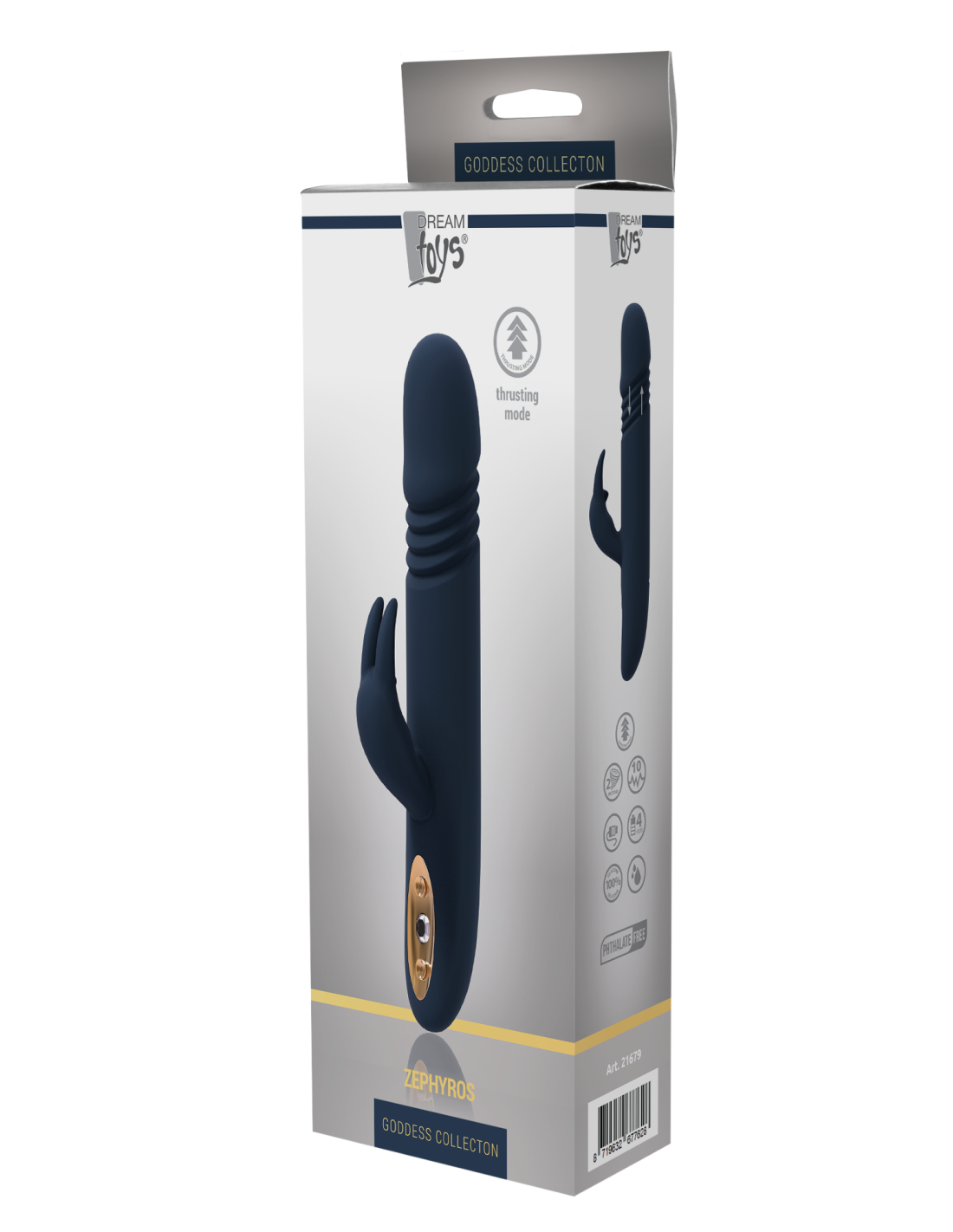 Este vibrador de conejo resistente al agua está hecho de silicona "líquida" segura para el cuerpo, lo que lo hace muy suave al tacto. Se siente como algo real. Los 2 potentes motores, situados en la parte superior del eje y en el estimulador de clítoris, ofrecen 3 niveles de vibración constante y 7 ritmos diferentes. Las crestas adicionales en el eje añaden estimulación adicional a la experiencia. Una característica especial del Zephyros es la función de empuje. El eje de este vibrador tiene un movimiento de empuje hacia arriba y hacia abajo. El conejo es flexible y tiene 2 orejas suaves y flexibles para una máxima estimulación del clítoris.