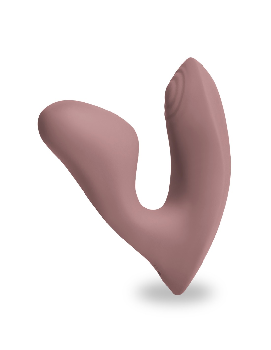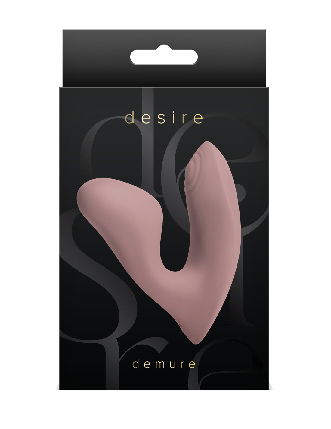 Demure by Desire – Un vibrador discreto, fácil de llevar y portátil con dos motores para una intensa estimulación vaginal y del clítoris. Demure está hecho de silicona de primera calidad segura para el cuerpo y texturizado para un placer adicional. Recargable. Apto con todos los lubricantes. 3 velocidades / 7 funciones.