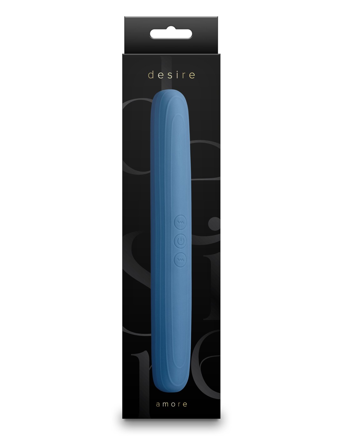 Amore de Desire – Un vibrador de doble punta único y magnífico que se puede usar solo o en pareja. Hecho de silicona flexible y segura para el cuerpo, Amore cuenta con dos potentes motores para estimular todas las zonas erógenas. Recargable. Apto con todos los lubricantes. 2 velocidades / 8 funciones en cada lado.