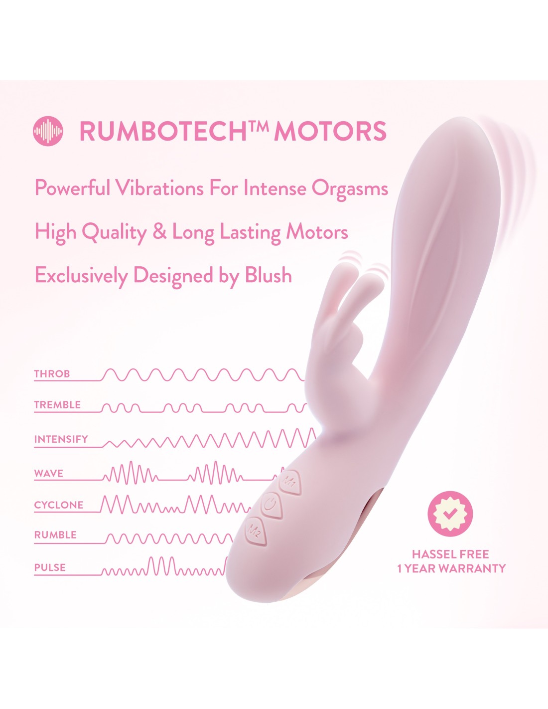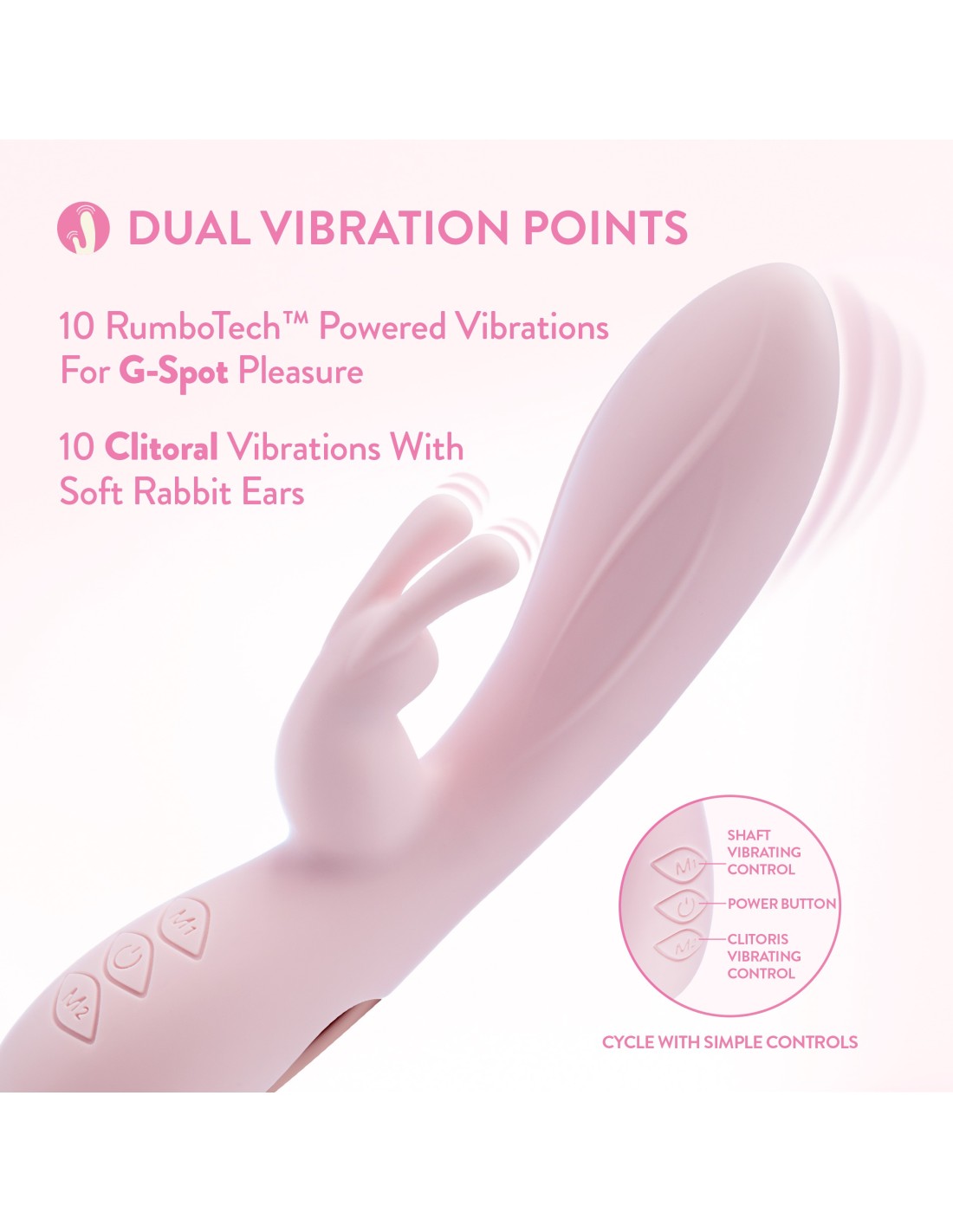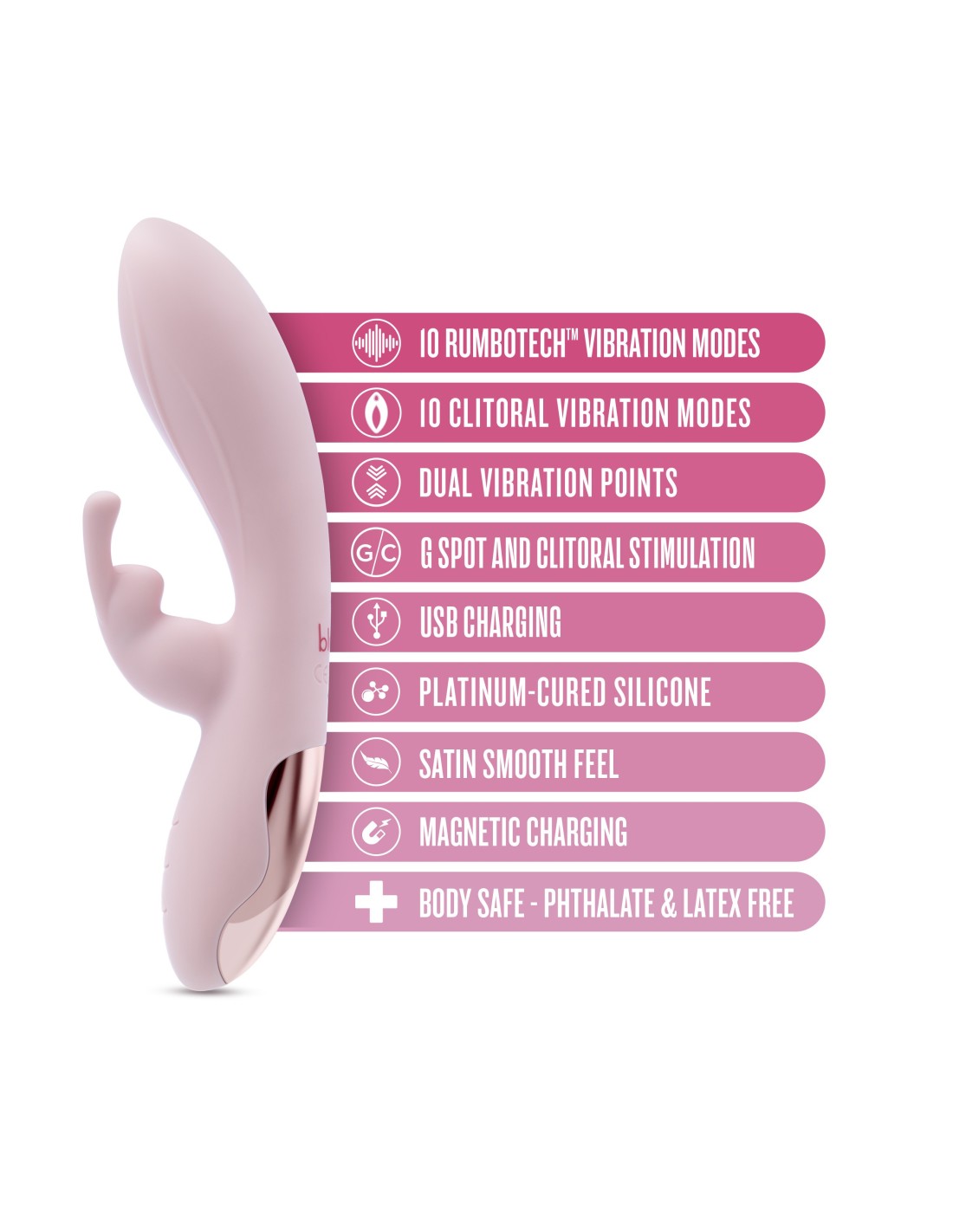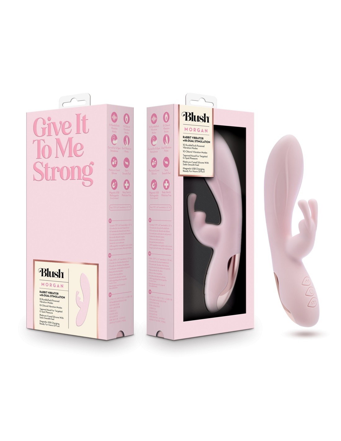 El shaft suave y flexible fue diseñado para su satisfacción, con una cabeza cónica que se desliza con gracia en su lugar, brindándole paquetes de placer íntimo. Impulsado por la tecnología RumboTech™, este conejo cuenta con 10 modos de fuertes vibraciones shaft , lo que brinda muchas formas de personalizar tu juego para que coincida con tus deseos. Las sensuales orejas de conejo acurrucan sin esfuerzo tu clítoris, agregando 10 vibraciones adicionales con una divertida mezcla de velocidades y patrones. Fabricado con silicona curada con platino de primera calidad, Morgan se siente maravillosamente suave y satinado contra la piel y la carga USB magnética alimenta este producto para horas de diversión. IPX6 a prueba de salpicaduras. Abraza y hazte dueño de tu placer con Morgan a tu lado. ¡Te va a encantar la sensación que te trae Morgan!