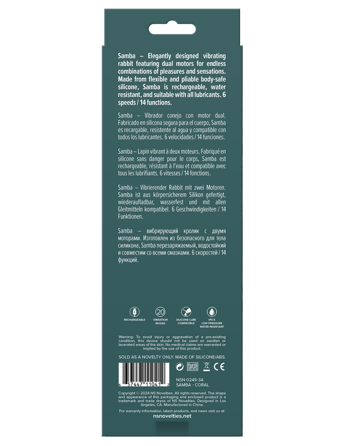 Samba: conejo vibrador de diseño elegante con motores duales para infinitas combinaciones de placeres y sensaciones. Fabricado en silicona flexible y flexible segura para el cuerpo, Samba es recargable, resistente al agua y adecuado con todos los lubricantes.