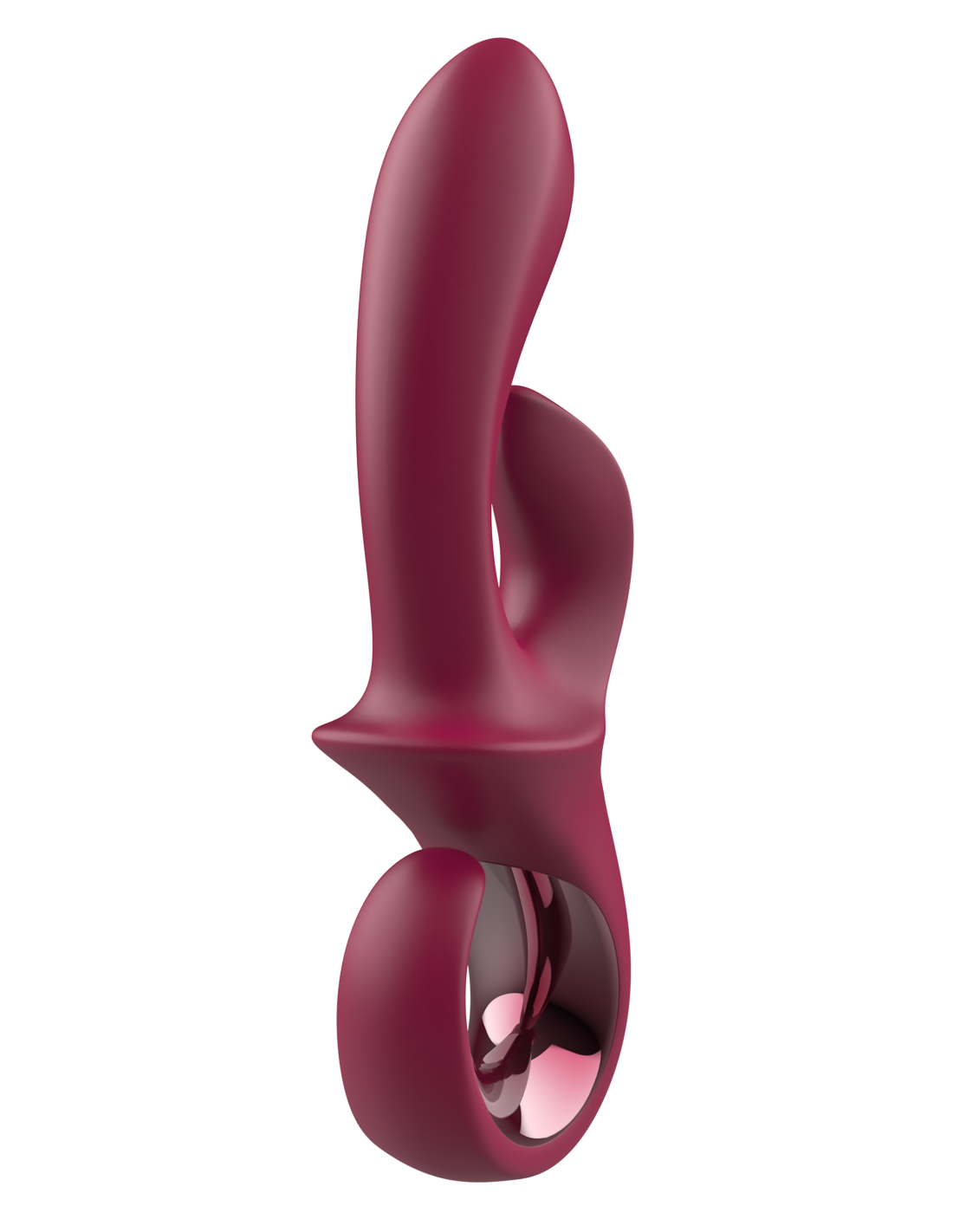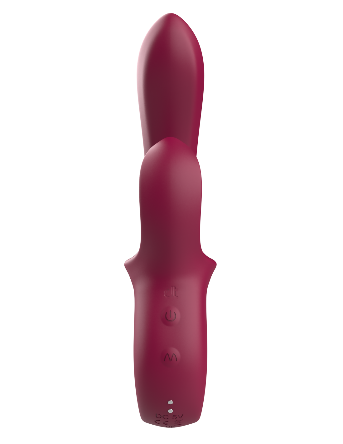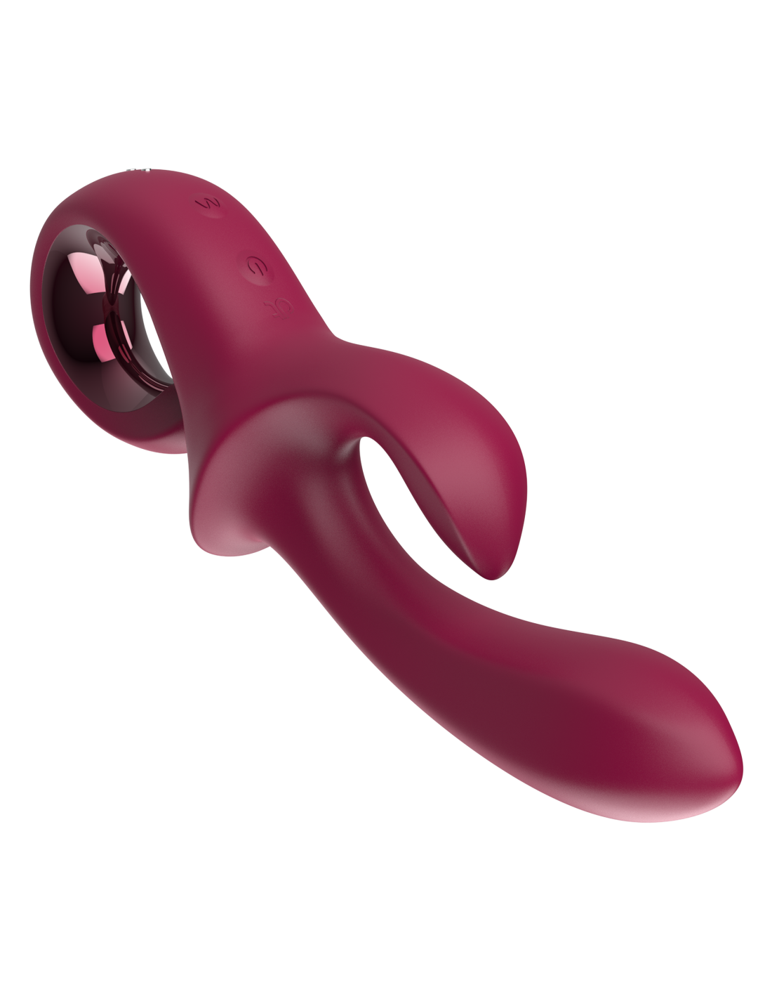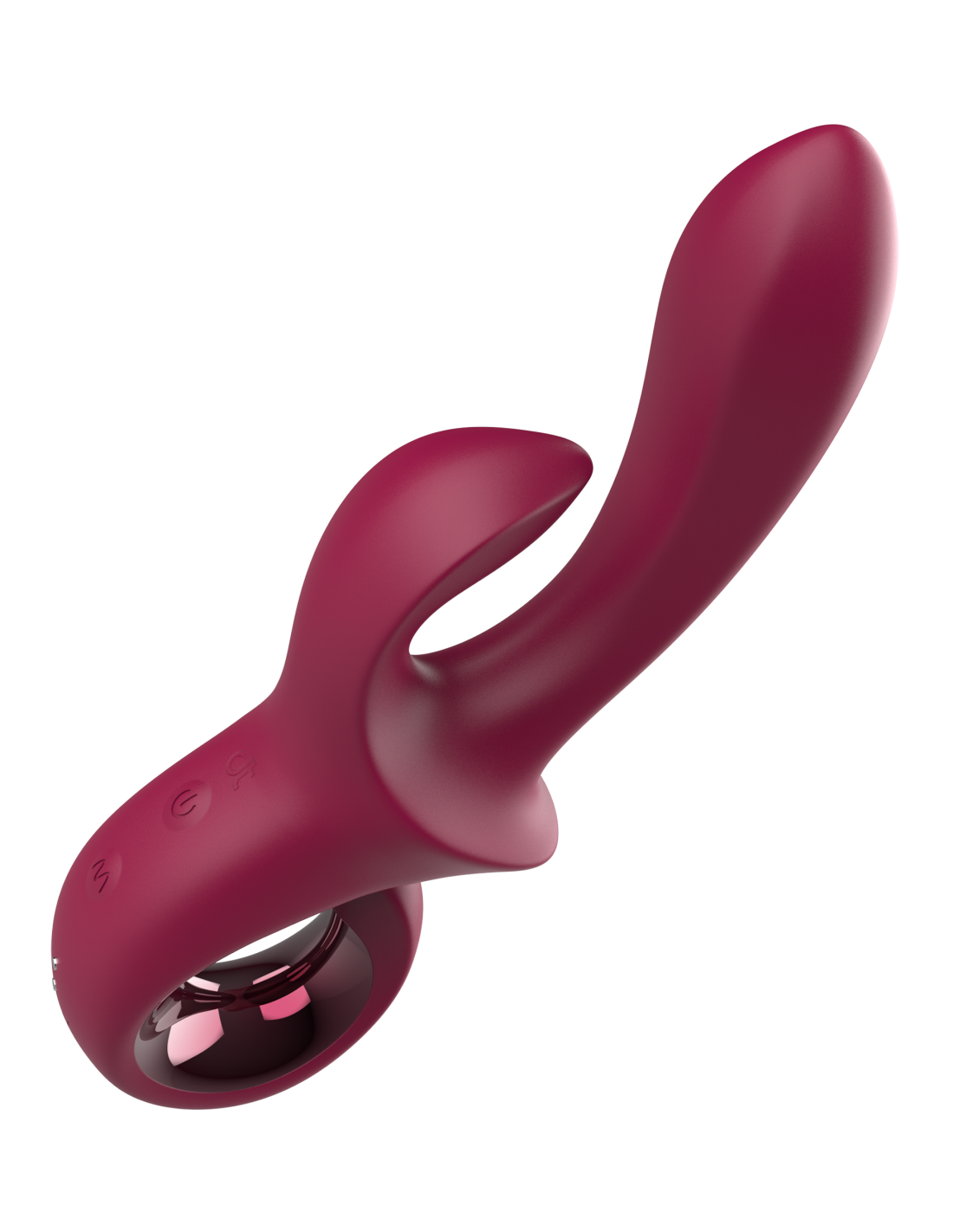 Vibrador dúo con carpa grande. Este vibrador Glam tiene 3 velocidades de vibración y 7 ritmos en el cuerpo principal y 3 velocidades de vibración y 7 ritmos en el estimulador de clítoris. Para facilitar su uso, hay botones separados para controlar las funciones del cuerpo principal y las del estimulador de clítoris. El Glam vibe es apto para la ducha, está hecho de materiales seguros para el cuerpo y es recargable con el cable USB magnético incluido.