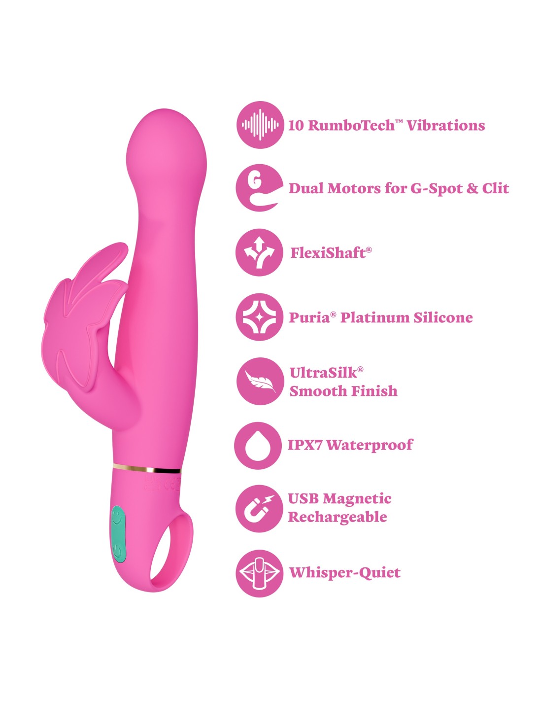 - 10 modos de vibración RumboTech™: 5 velocidades y 5 patrones