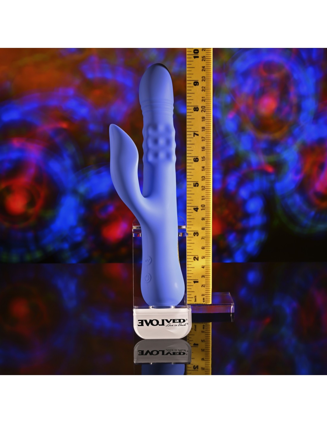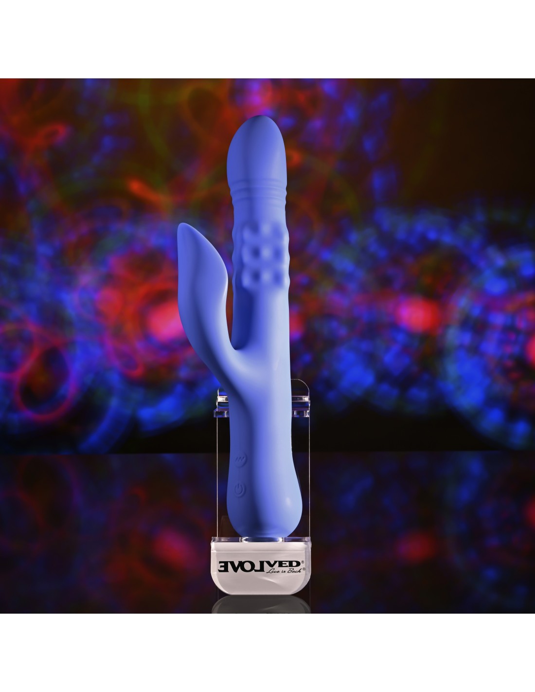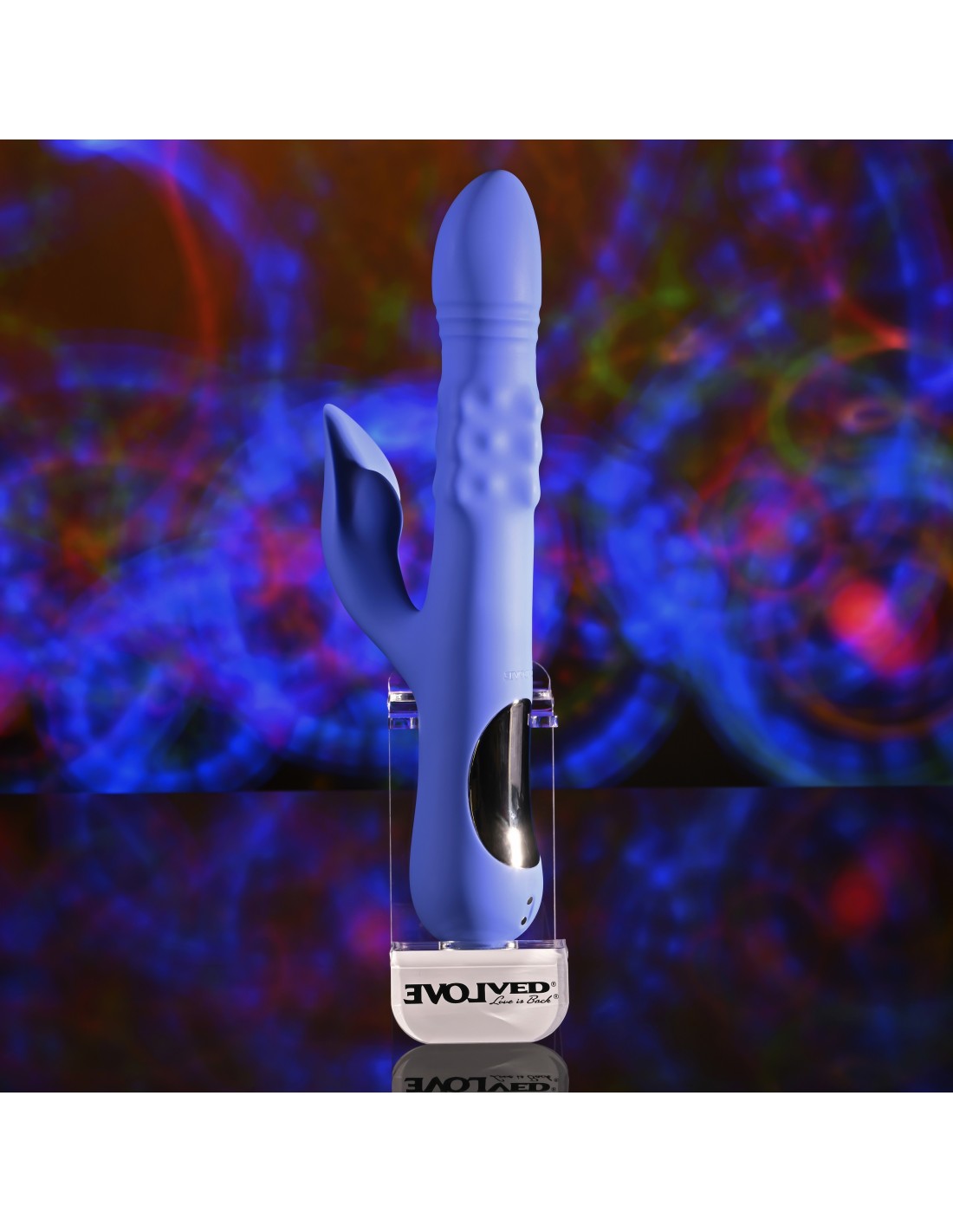 Deja boquiabierto de placer cuando actives los 3 motores de esta gran vibración dual con muchas sorpresas. El shaft principal no solo vibra poderosamente, sino que también empuja y se abulta con perlas agitadas para crear una sensación de "explosión" que te envía al límite. El estimulador vibratorio en forma de pétalo agrega una cobertura tentadora con flexibilidad para moverse con su cuerpo, incluso bajo el agua, ya que todo el juguete es completamente sumergible.