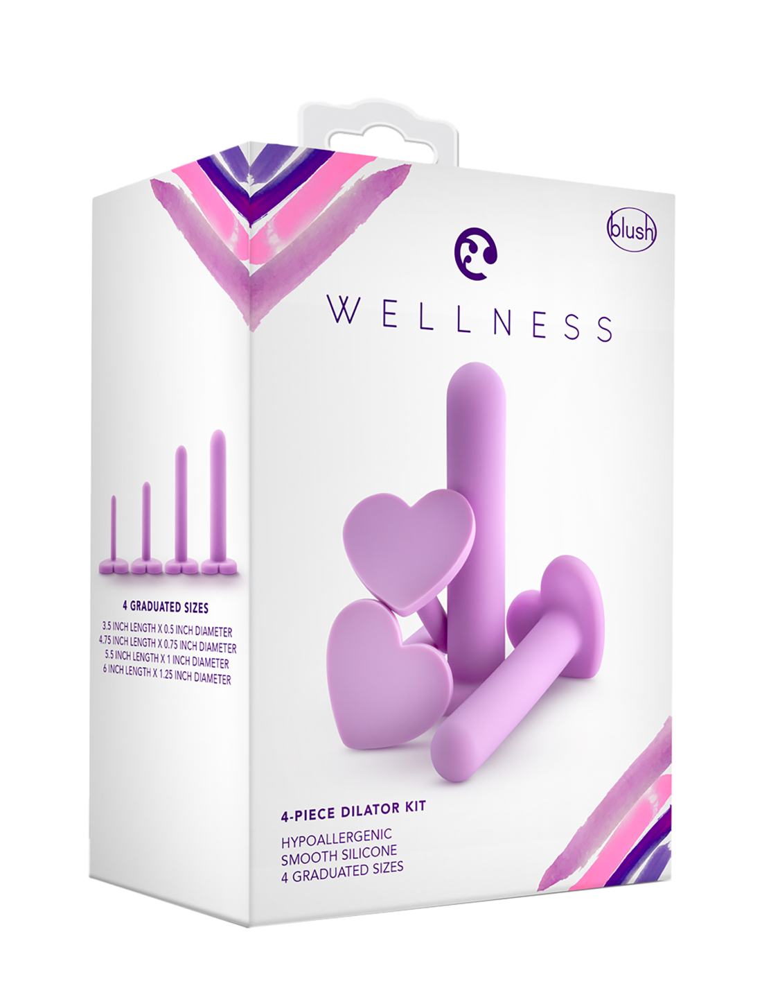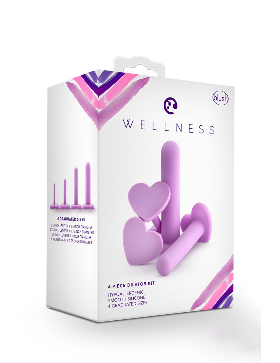 El juego de dilatadores de silicona Wellness está cuidadosamente elaborado para su comodidad. Cada dilatador vaginal de este asequible kit de 4 piezas tiene una forma recta y una punta redondeada para evitar la irritación cervical. Con 4 dilatadores de diferentes tamaños, que comienzan con solo 0,5 pulgadas de ancho, el Wellness Set le permite comenzar con algo pequeño y aumentar de tamaño cuando se sienta listo. ¡Las bases en forma de corazón de estos dilatadores son un toque lindo y divertido! Además, la silicona suave y satinada se siente lujosa al tacto. Úselo con su lubricante a base de agua de calidad favorito para una inserción más fácil. Hecho de silicona curada con platino 100 %, el juego de dilatadores Wellness es hipoalergénico, no poroso y fácil de limpiar.