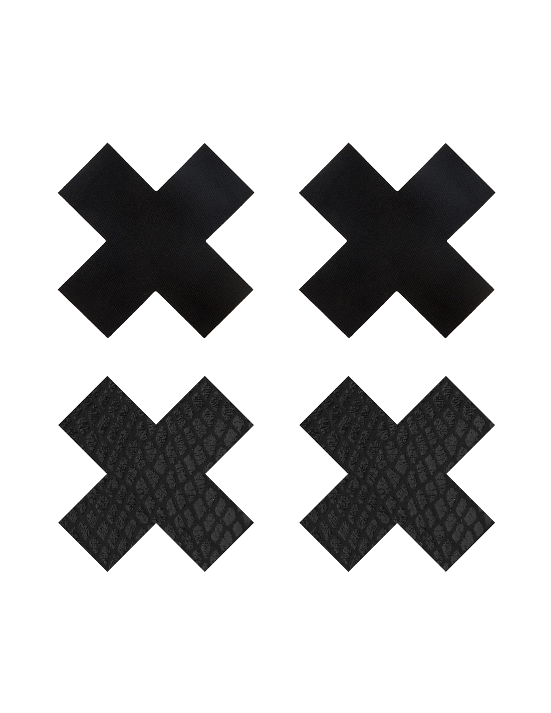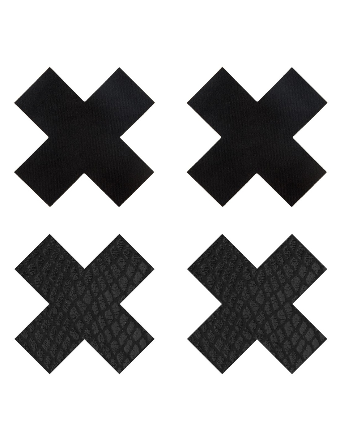 - Las empanadas autoadhesivas en forma de X incluyen un juego de satén negro