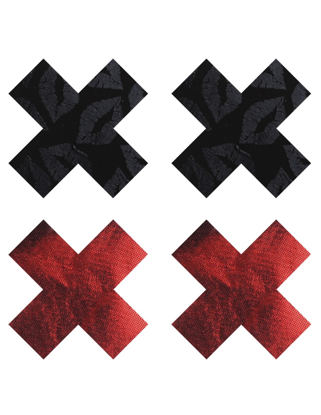 - 2 pares en rojo metalizado y negro con estampado de labios