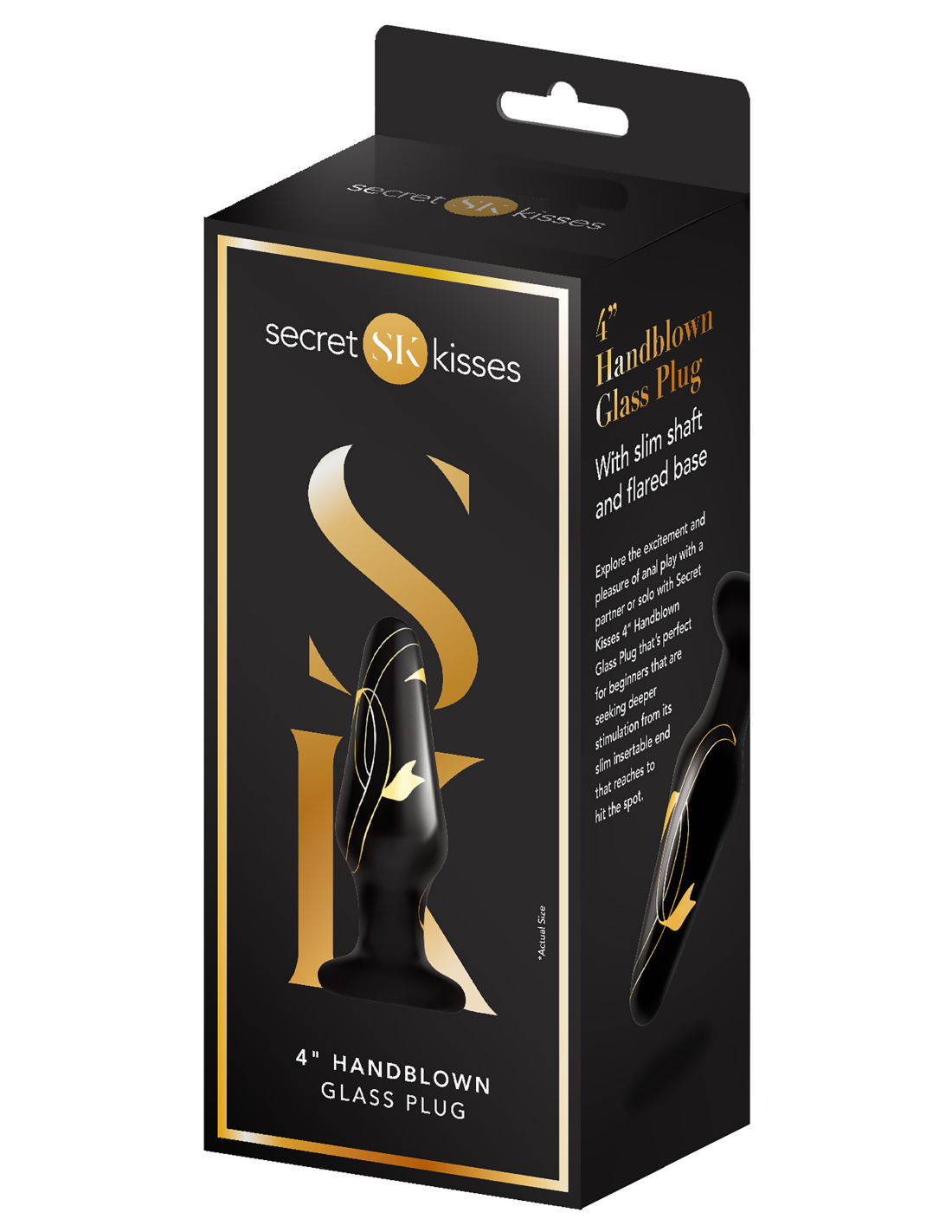 Explora la emoción y el placer del juego anal en pareja o solo con el plug de vidrio soplado a mano Secret Kisses de 4" que es perfecto para principiantes que buscan una estimulación más profunda desde su delgado extremo insertable que llega hasta el punto.