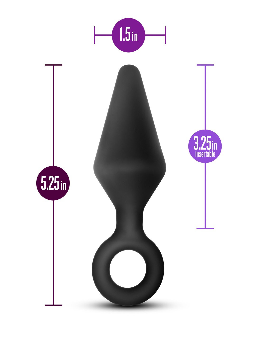 ¡Para cualquiera que busque explorar nuevas sensaciones anales solo o en pareja! Anal Adventures ofrece muchas opciones para elegir. ¡El Silicone Loop Plug presenta el complemento perfecto tanto para principiantes como para aventureros anales experimentados! Tiene forma cónica para una inserción cómoda y segura y es flexible para que se mueva con el cuerpo durante el uso. También tiene un lazo fácil de tirar en la parte inferior para una recuperación cómoda. Este enchufe está fabricado con tecnología StayPut™, lo que garantiza que una vez que se inserta en el cuerpo, ¡no se salga! UltraSilk® suave y hecho de silicona curada con platino Puria™, es seguro para el cuerpo, no contiene ftalatos, fragancias, látex y es fácil de limpiar.