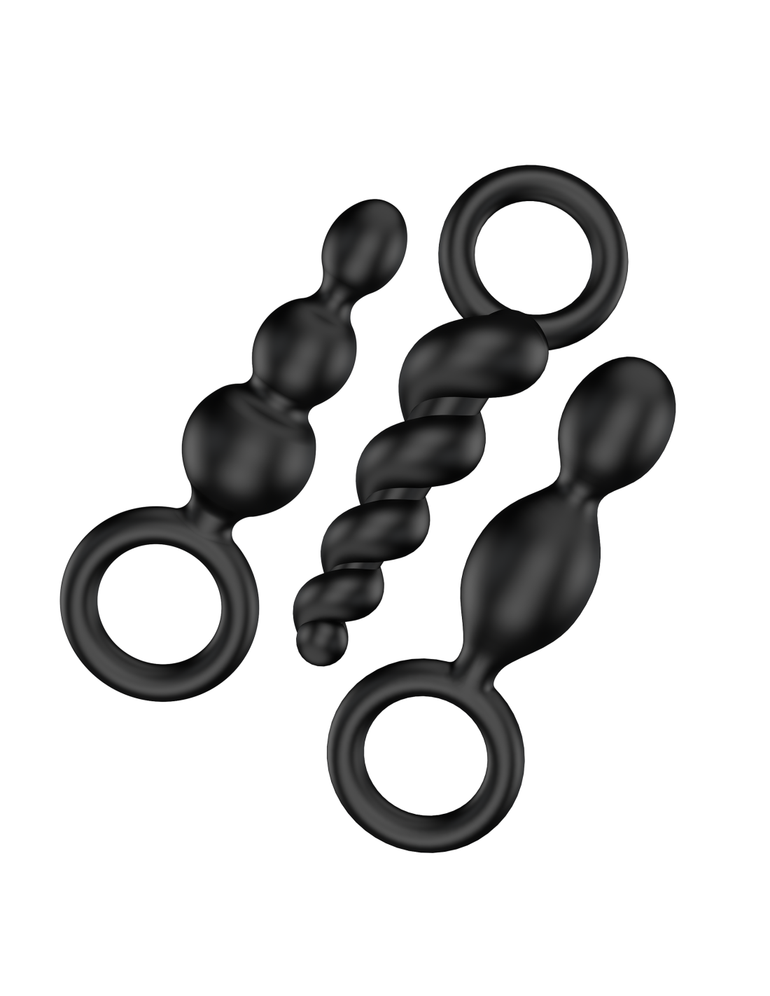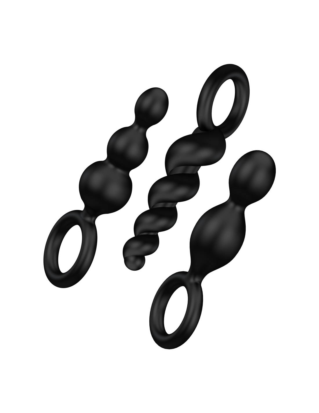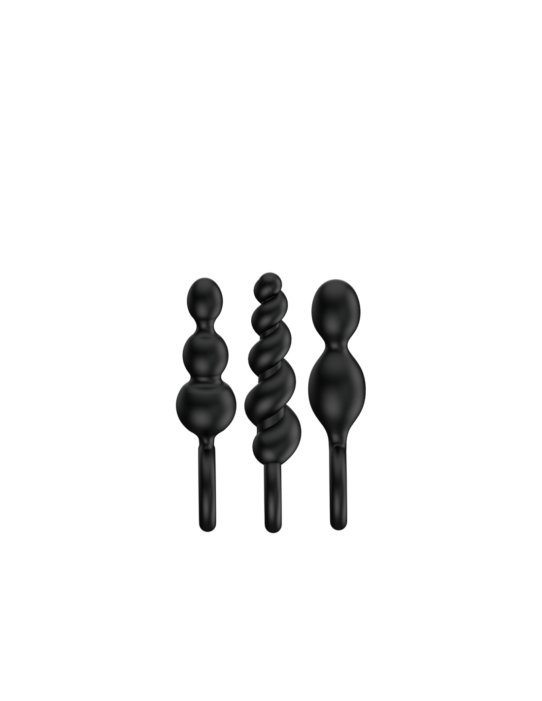¿Uno, dos o tres? Si estás buscando una emocionante gama de juegos de masajes sensuales y para sentirte bien en tu espalda, este trío sexy es perfect para tu próxima aventura anal. Los tapones flexibles están hechos de silicona de grado médico, acariciando su ano con una superficie suave al tacto. Gracias a sus puntas estrechas y a su textura lisa y ultrasuave, también son perfect para principiantes y exploradores. Elija entre un diseño en espiral seductoramente retorcido, una forma de cono estrecho o el diseño "clásico" que consiste en bolas de tamaños crecientes. El set ofrece una variedad de sensaciones, añadiendo una gama de placeres sensuales a tus juegos de amor, ya sea que estés disfrutando de una tórrida sesión en solitario o de un apasionado tiempo de juego con tu pareja. Descubra la emocionante mezcla de diferentes estructuras ascendentes y entrene su paso trasero de una manera particularmente divertida. El emocionante vaivén te permite disfrutar de cada centímetro, mientras que el deslizamiento sin fricción de los tapones te estimulará de una manera inolvidablemente intensa. Si llevas uno de estos flexibles adoradores de placer como tapón, las diferentes estructuras te acariciarán con cada movimiento mientras te dejan las manos libres: ¡lo que hagas con ellas depende de tu imaginación erótica!