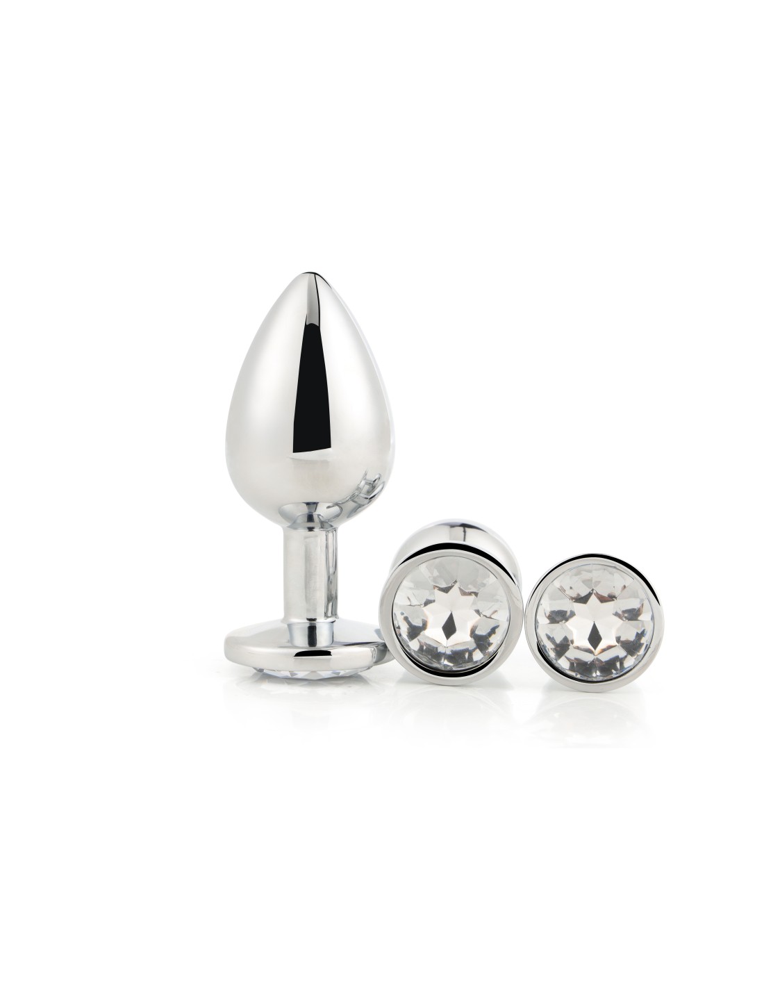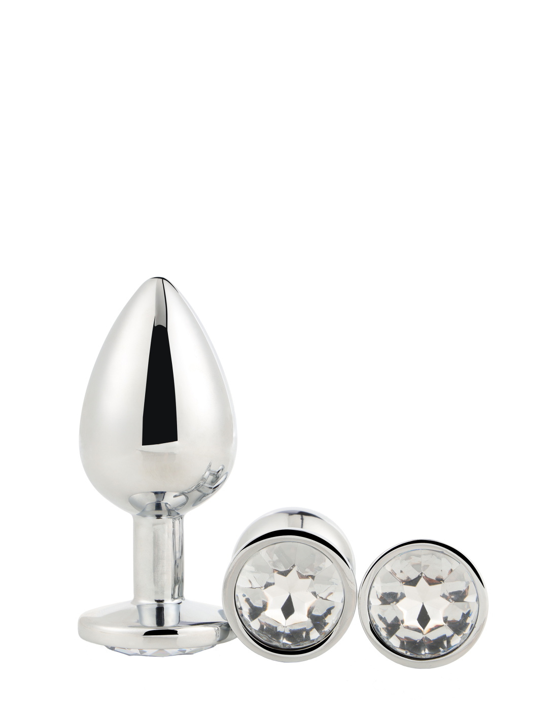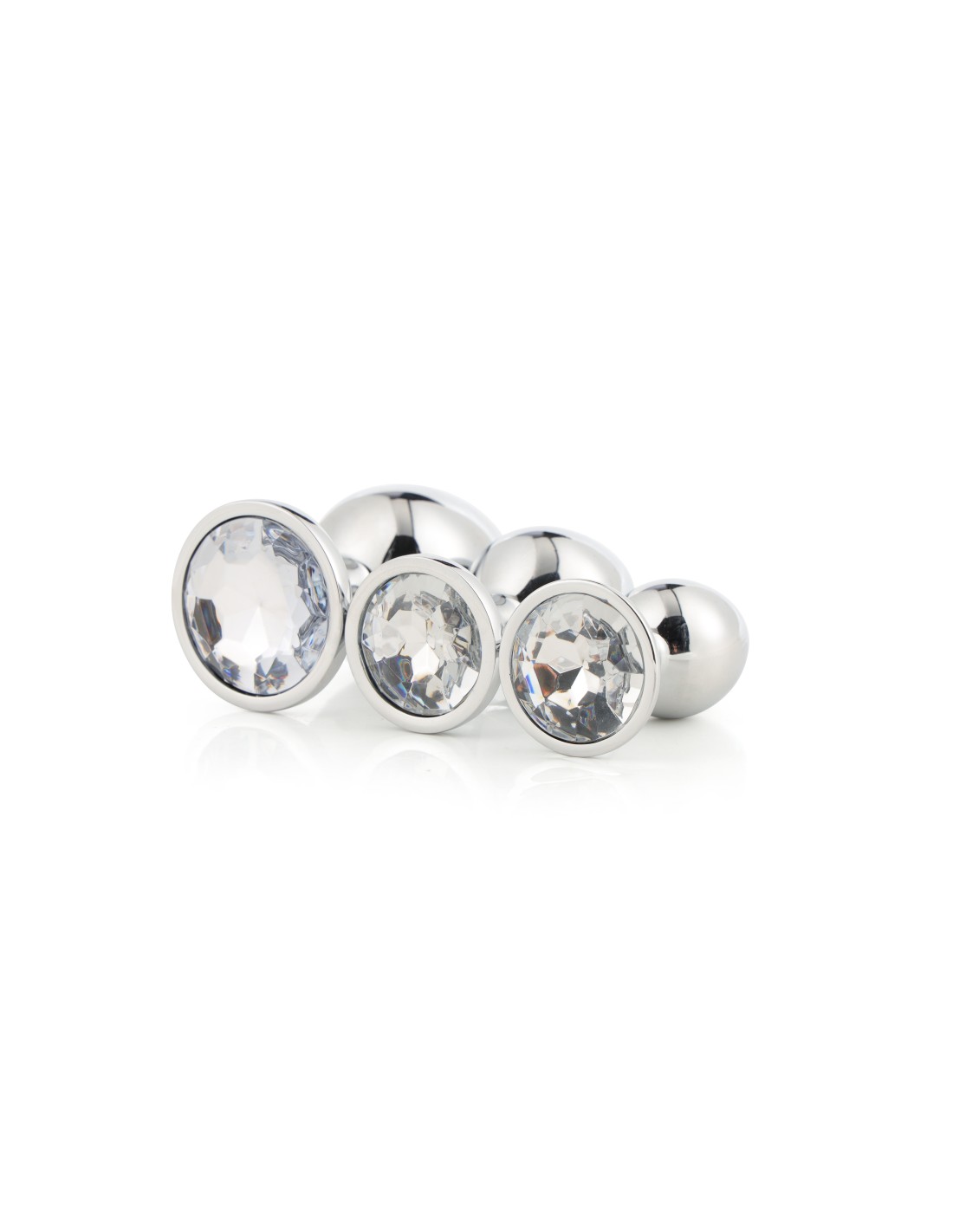 La colección Gleaming Love presenta este set de plugs anales brillantes en 3 tamaños, cada uno con una piedra preciosa. Hechos de aluminio suave y liviano y sin costuras, estos juguetes de placer son fáciles de deslizar y la base acampanada garantiza una sensación de seguridad mientras mantiene la joya cómodamente colocada entre las nalgas.