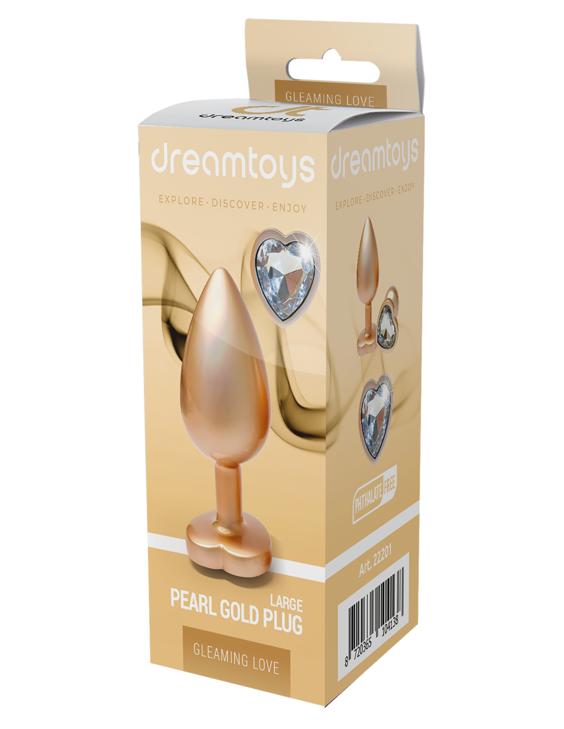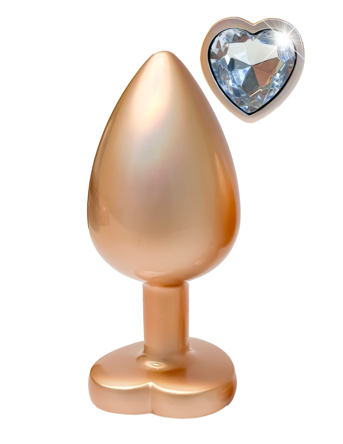 La colección Gleaming Love presenta este tapón de tamaño pequeño con acabado perlado en oro y piedra preciosa. Fabricado en aluminio liso y ligero y sin costuras, este juguete de placer es fácil de deslizar y la base acampanada garantiza una sensación de seguridad al tiempo que mantiene la joya cómodamente entre las nalgas.