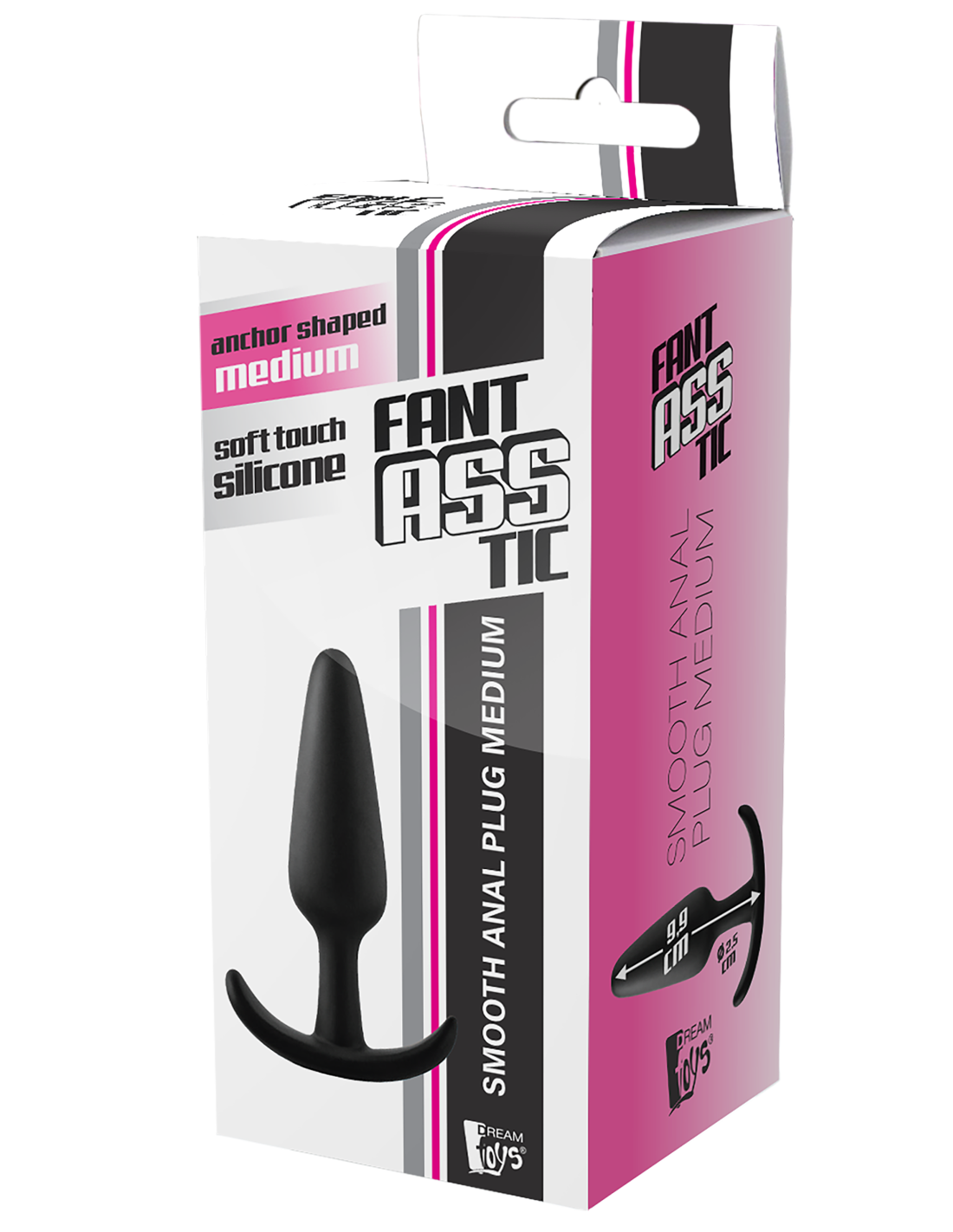 Este plug anal fantasstic está fabricado en silicona negra lisa y suave al tacto. Es el plug de tamaño mediano en una serie de 3 tamaños, adecuado para principiantes y amantes experimentados del placer anal. El plug tiene una base en forma de ancla para asegurar que el plug permanezca bien en su lugar y mejorar la sensación de seguridad.