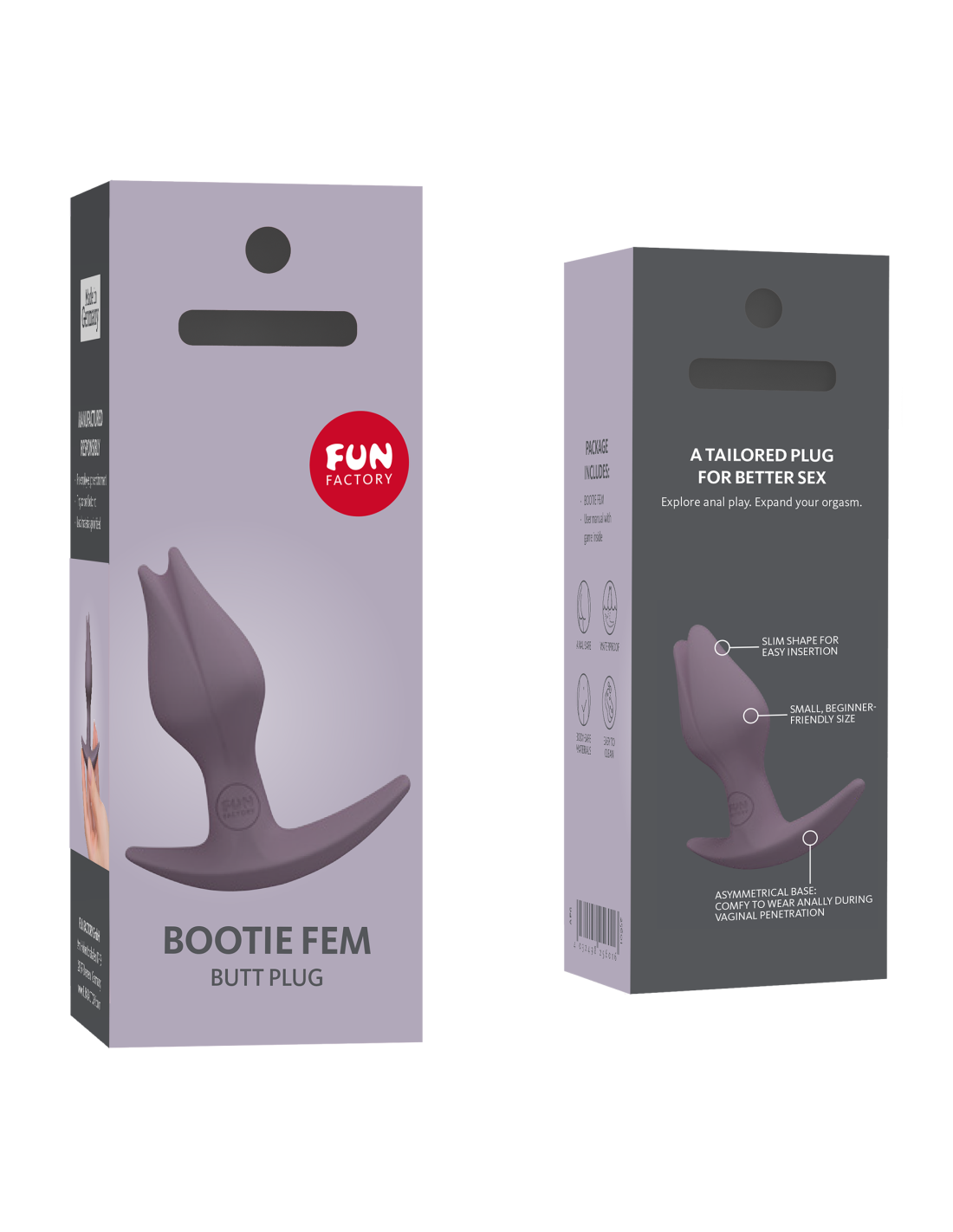 ¿Eres una persona con vagina, buscando un tapón anal para fit tu anatomía? ¿O quieres experimentar el sexo vaginal mientras llevas un tapón anal? Estás en el lugar correcto. Te presentamos BOOTIE FEM, un tapón anal con una forma de tulipán accesible. Es lo suficientemente cómodo para los novatos en el plug anal y está hecho para ser usado durante el sexo, para mega-orgasmos FUNtásticos.