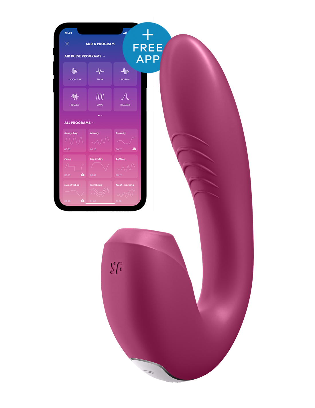 Disfruta de la estimulación simultánea del punto G y del clítoris con las funciones de vibraciones y pulsos de aire del Satisfyer Sunray. El conejo de silicona controlado por aplicación tiene una articulación flexible que se adapta fácilmente a tu anatomía. Compatible con la aplicación gratuita Satisfyer – disponible para iOS y Android. Forma flexible. Estimula el clítoris con ondas de presión sin contacto y al mismo tiempo masajea el punto G con vibraciones.