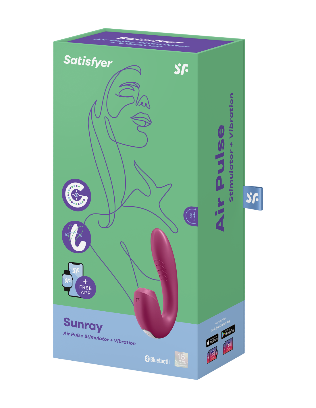 ¡Calienta más que el sol con Sunray! Este vibrador Air-Pulse parecido a un conejo presenta un eje flexible con un eslabón de cadena en su interior. Una vez insertado, el eje se puede ajustar fácilmente para adaptarse a su anatomía y lograr un placer individualizado. El Sunray, que contiene un eje ligeramente más delgado para una estimulación más profunda, también presenta unas nervaduras detalladas para sensaciones adicionales. Con Bluetooth habilitado, Sunray se conecta a la galardonada aplicación gratuita Satisfyer Connect, lo que le brinda la opción de controlar de forma independiente los dos motores para personalizar las ondas de presión y vibraciones de Air-Pulse. El Sunray está hecho de silicona segura para el cuerpo, es recargable y tiene clasificación IPX7 de impermeabilidad. ¡Siempre será un día luminoso cuando lo empieces con tu Sunray!