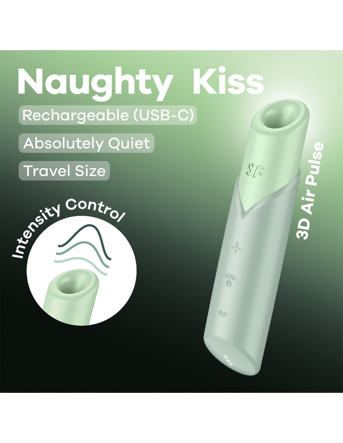 Es hora de ser un poco travieso: The Naughty Kiss viene con un suave acabado de silicona mate, un diseño descarado y una estimulación de pulso de aire totalmente ajustable para las almas aventureras.