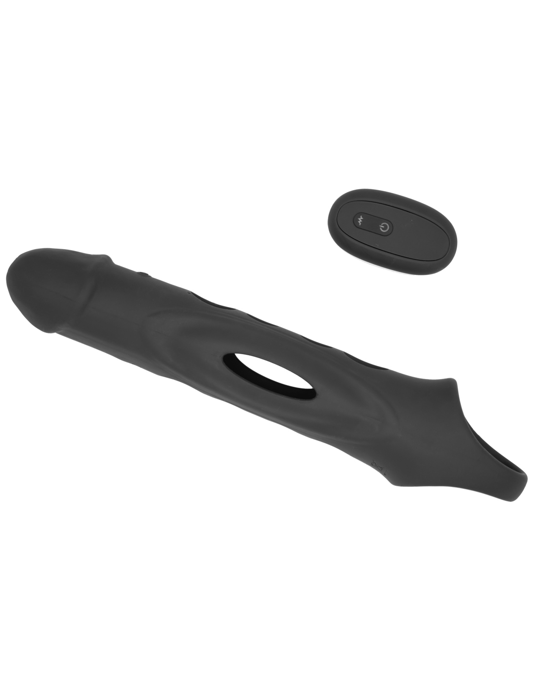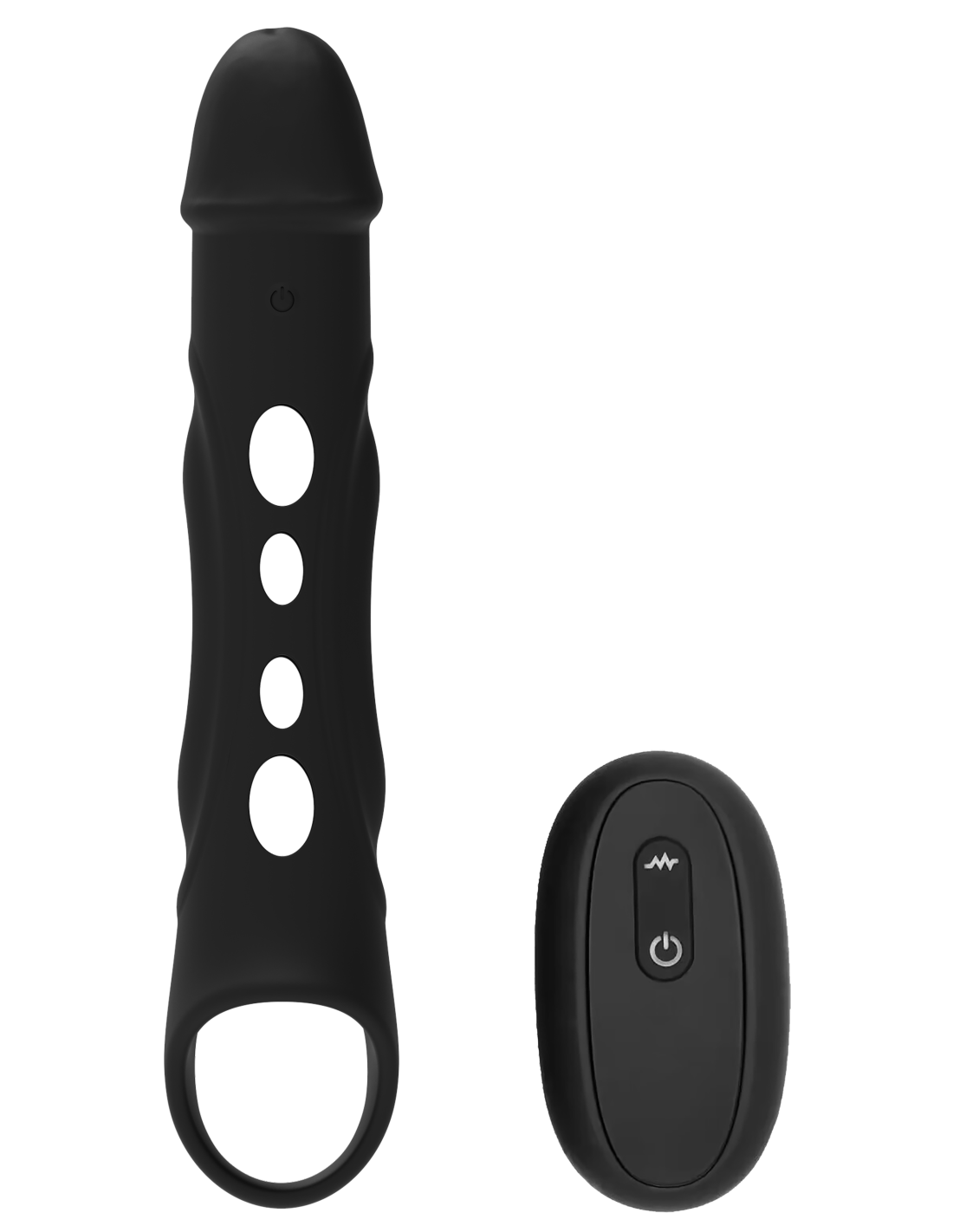 El extensor vibratorio deRamrod proporciona longitud adicional y performance adicional. Con un vibrador incorporado en la punta, este extensor combina tamaño con vibraciones emocionantes. El manejo es sencillo con el mando a distancia inalámbrico o con un solo botón en el funda. Ideal para el control de manos libres y la máxima libertad. Número de vibraciones: 3 velocidades y 7 ritmos. Fabricado en silicona segura para el cuerpo, el funda es flexible y cómodo de llevar. Longitud insertable 14,5 cm. Resistente al agua IPX6. Recargable con el cable USB-pin incluido. Después de una carga completa de 90 minutos, el motor funcionará durante 40 minutos.