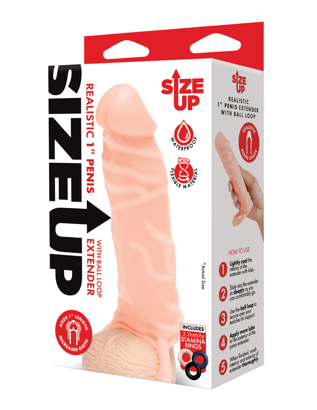 SIZE UP EXTENSOR DE PENE REALISTA DE SILICONA CON CARNE DE BUCLE DE BOLA