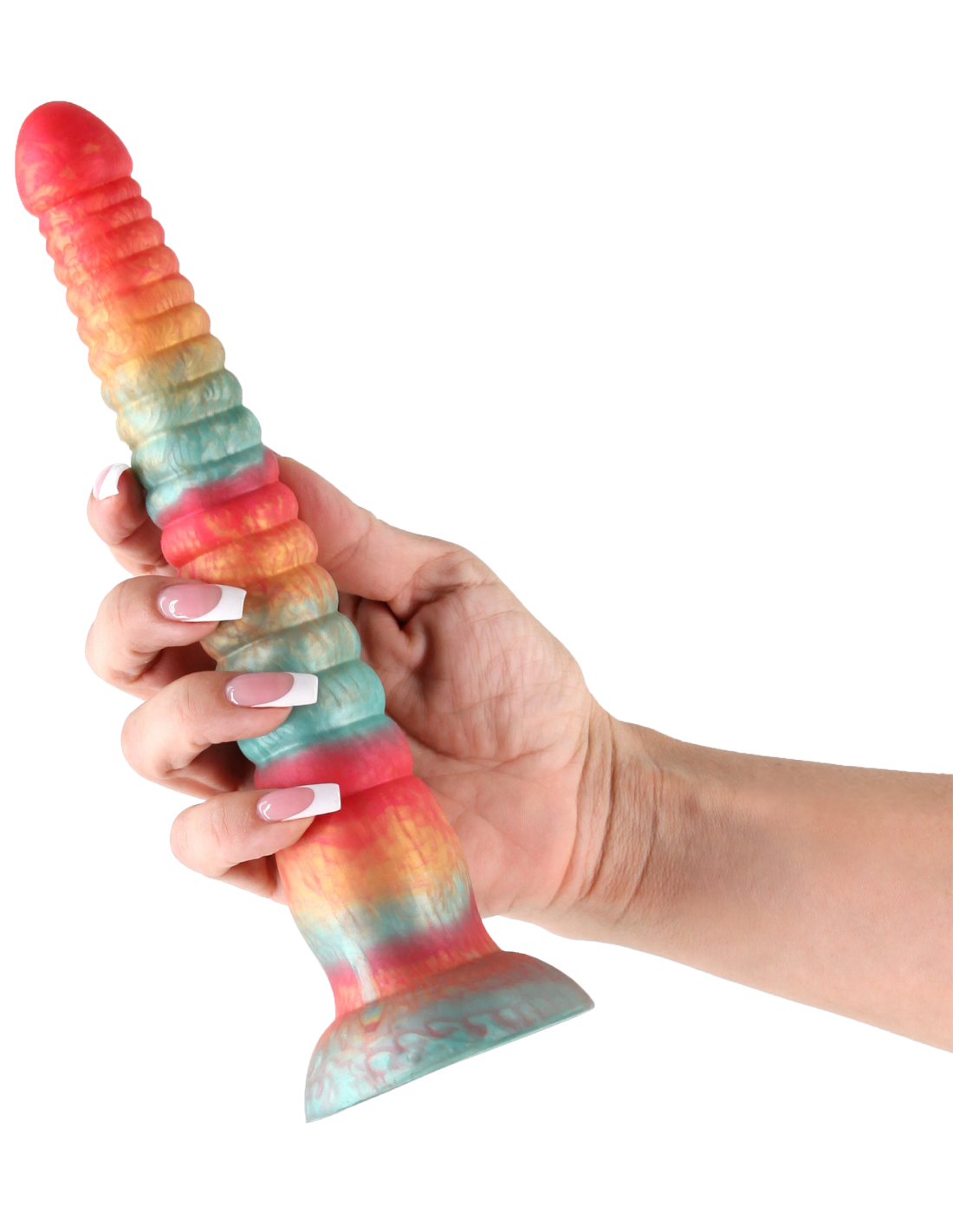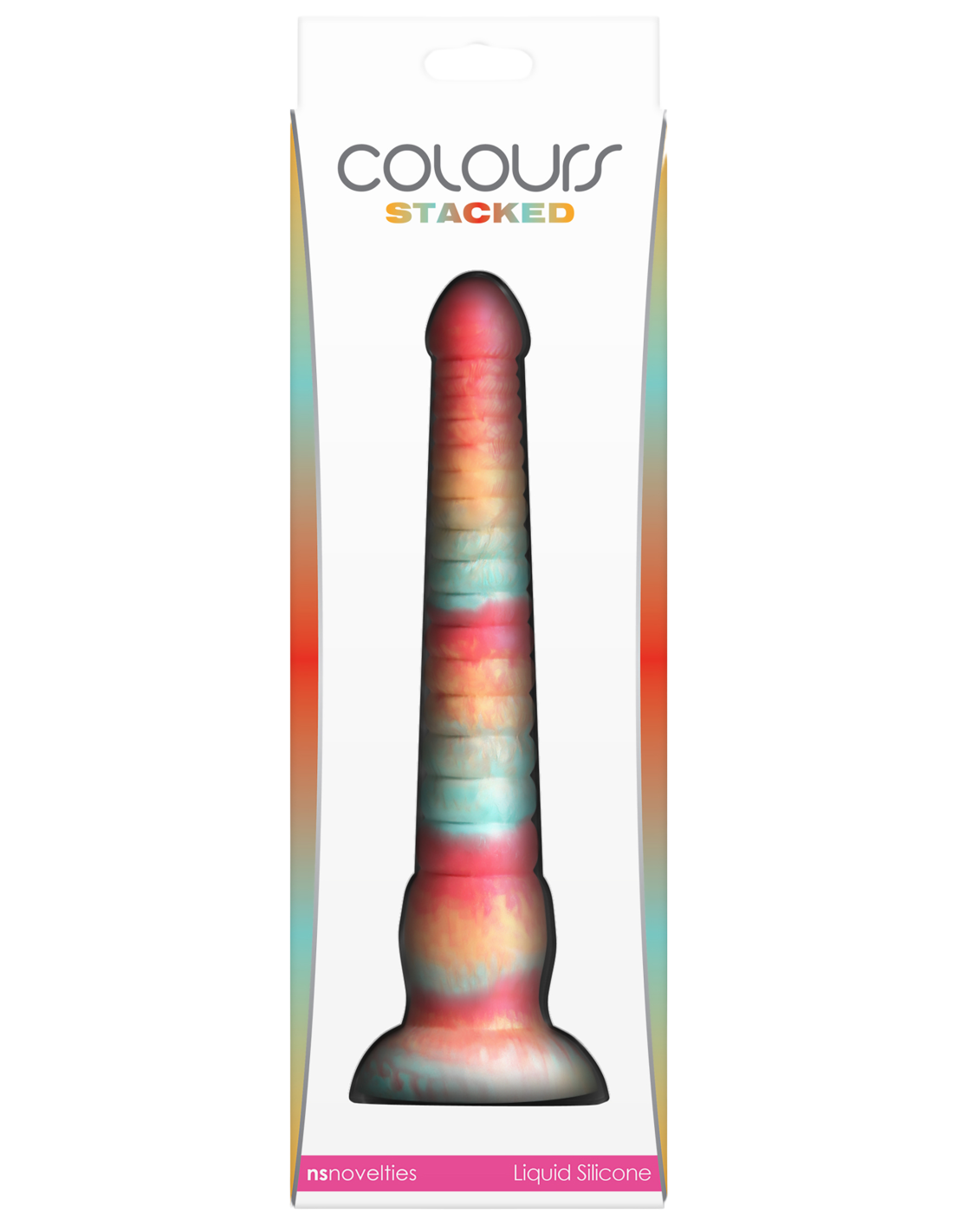 Apilado por colores: dongs únicos y tricolores fundidos en silicona líquida de grado superior. La textura satinada proporciona una sensación más satisfactoria. Disponible en varios tamaños y colores. Apto con todos los lubricantes.