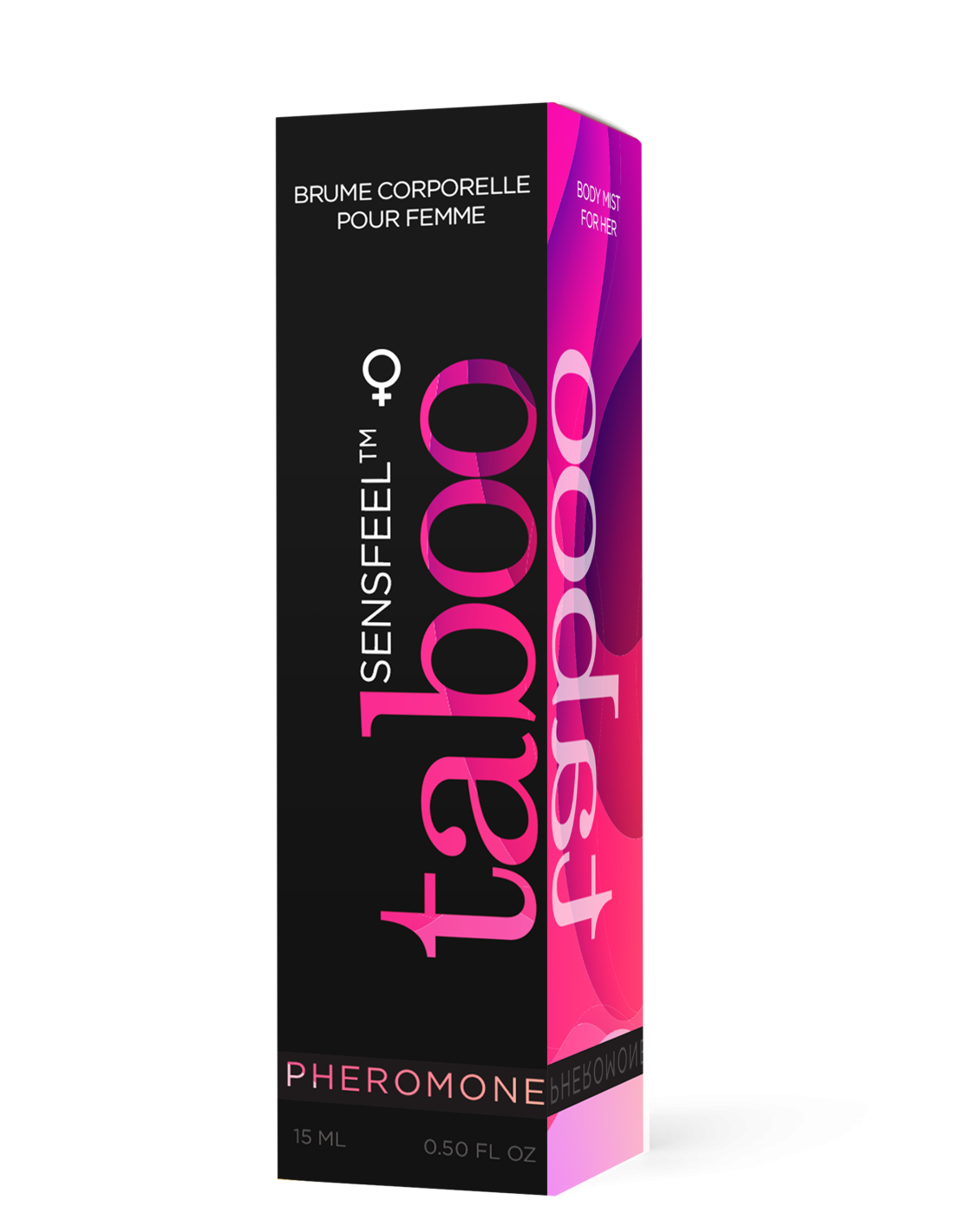 Taboo Pheromone For Women es una bruma corporal que aumenta el poder de seducción de la mujer. Esta bruma corporal de aroma neutro se puede utilizar además de su perfume habitual o para lograr un mayor efecto con una sensual fragancia Taboo que ya contiene aromas afrodisíacos de flores y animales. La bruma corporal de feromonas tabú está diseñada para promover la producción de feromonas femeninas. Su formulación única contiene la tecnología SensfeelTM desarrollada por Provital, y cuya eficacia ha sido demostrada por numerosos estudios. Los hombres automáticamente se sentirán más atraídos por las mujeres que usen feromonas Taboo.