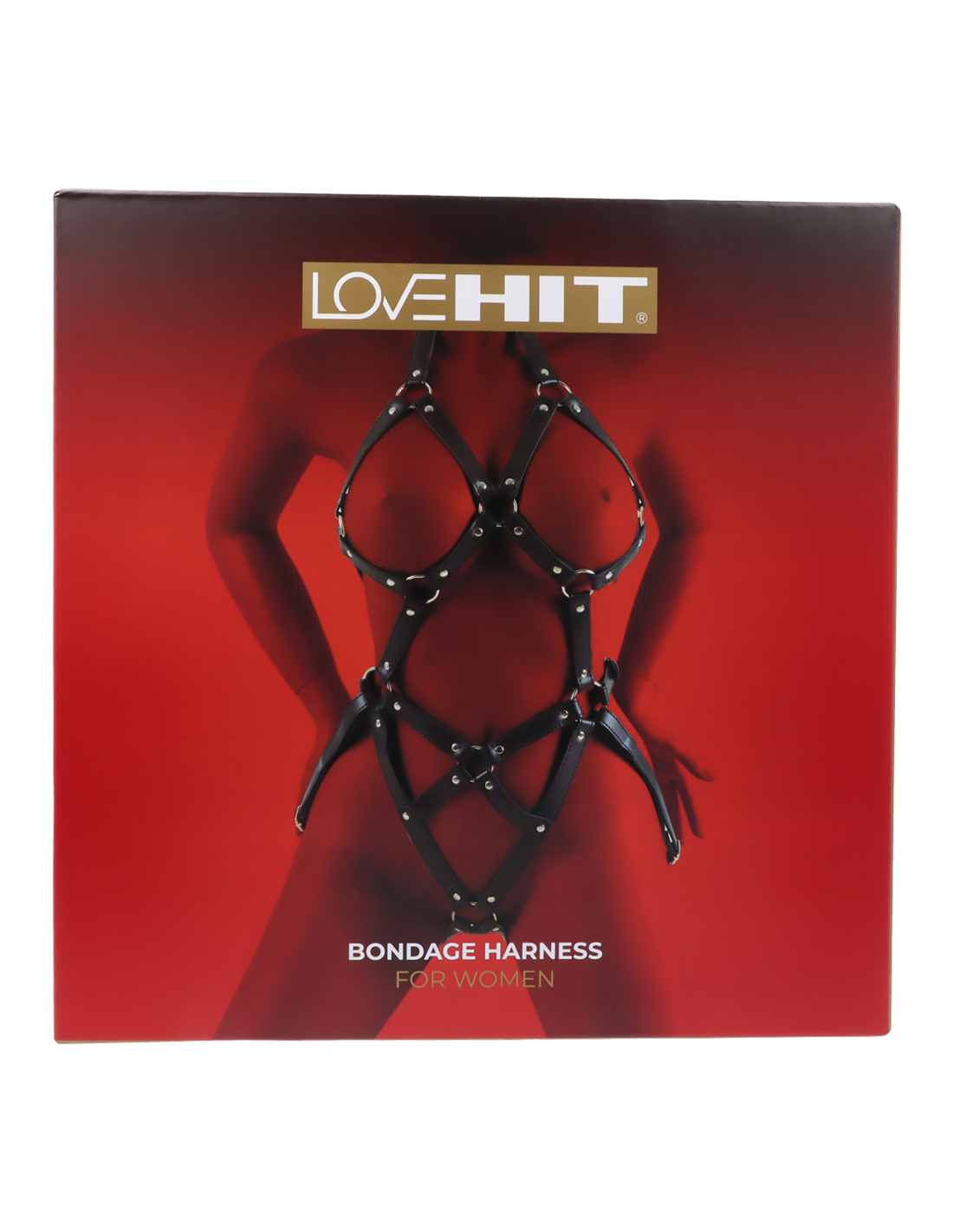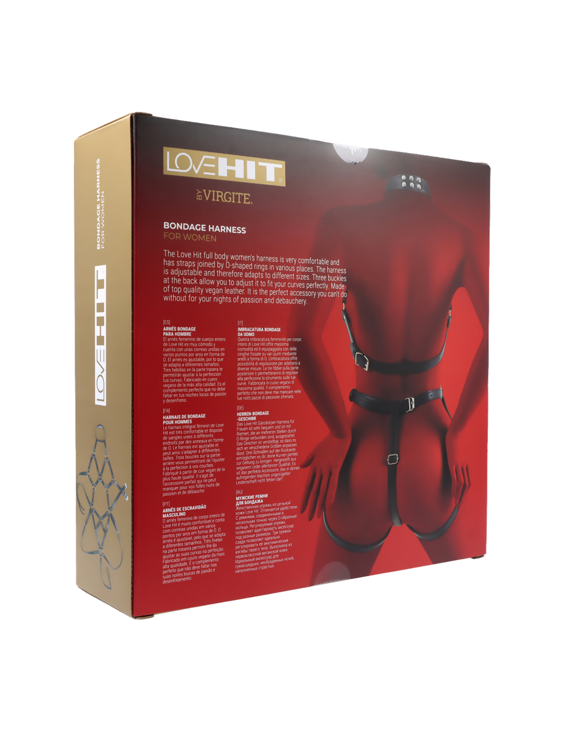 Arnés corporal de mujer totalmente ajustable fabricado en piel vegana.