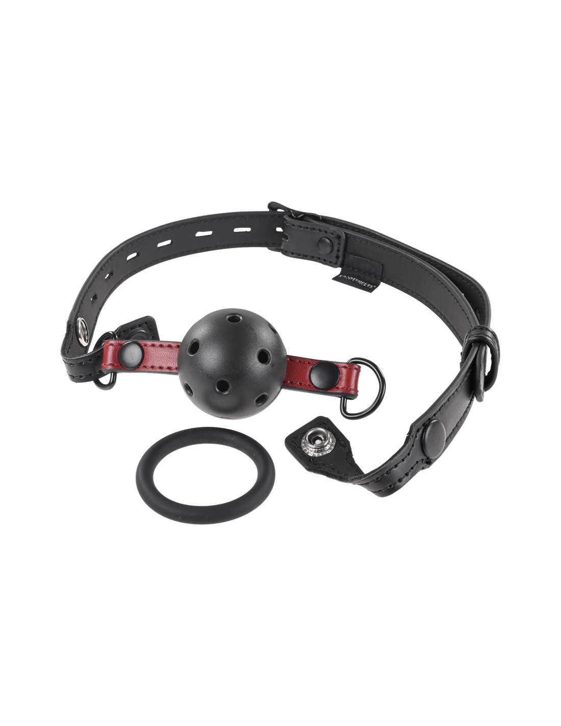 Agregue el "shhhh" a lo sensual con detalles escarlatas brillantes sobre un acabado satinado negro. El lujoso cuero sintético y su elección de anillo para morder o mordaza de bola transpirable hacen de la mordaza intercambiable Saffron una herramienta imprescindible y versátil para cualquier colección de bondage. Simplemente desabrocha cada lado de la mordaza para cambiar las piezas y disfrutar de múltiples formas de jugar.