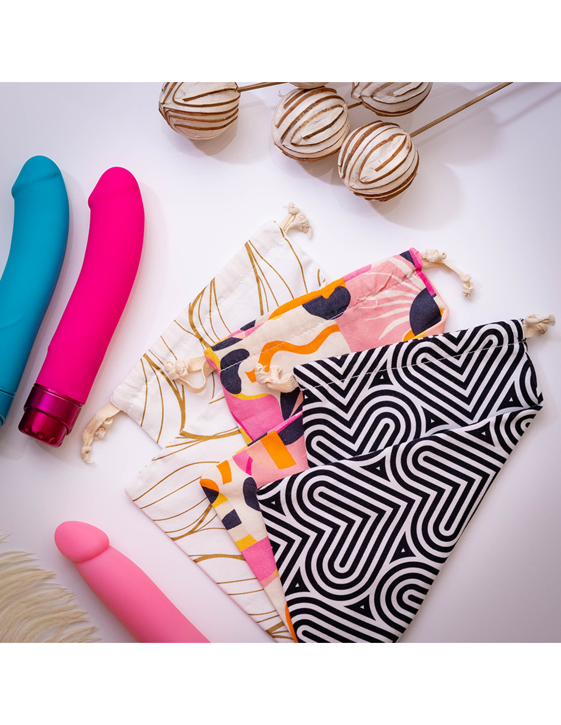 ¡Esta adorable bolsa de almacenamiento Burst by The Collection tiene el tamaño perfect y no sumerge pelusa! La bolsa de juguete de algodón suave se puede lavar a máquina y se puede secar en secadora... ¡Por si acaso! Use el cierre de corbata con cordón fácil y seguro para mantener sus artículos privados antes y después del juego. ¡Es hora de guardar tus juguetes sexuales y accesorios favoritos con estilo!