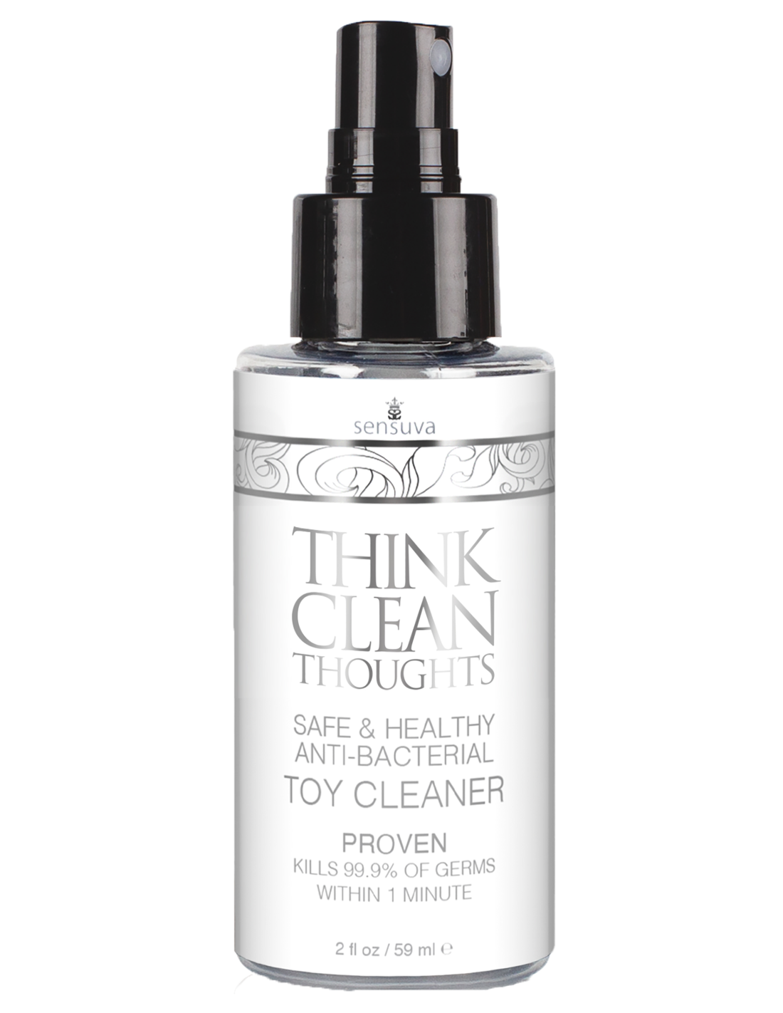 Think Clean Thoughts es un spray limpiador antibacteriano rápido y fácil de usar, que contiene ingredientes antimicrobianos activos que han demostrado matar el 99,9% de todas las bacterias, y es lo suficientemente suave como para no causar irritación en los tejidos delicados. Elaborado con ingredientes saludables como: agua, extracto de hamamelis, extracto de semilla de uva, naranja dulce y otros aceites esenciales verdaderos. Think Clean Thoughts es una mejor opción para los productos de placer de limpieza que los jabones de manos y cuerpo en barra estándar porque no contiene aceite y no descompone los materiales de los juguetes, ni deja ningún residuo que pueda ser irritante para los tejidos delicados. Fácil de usar: pulverizar directamente sobre los productos de placer tanto antes como después de su uso. Limpie el exceso de líquido.