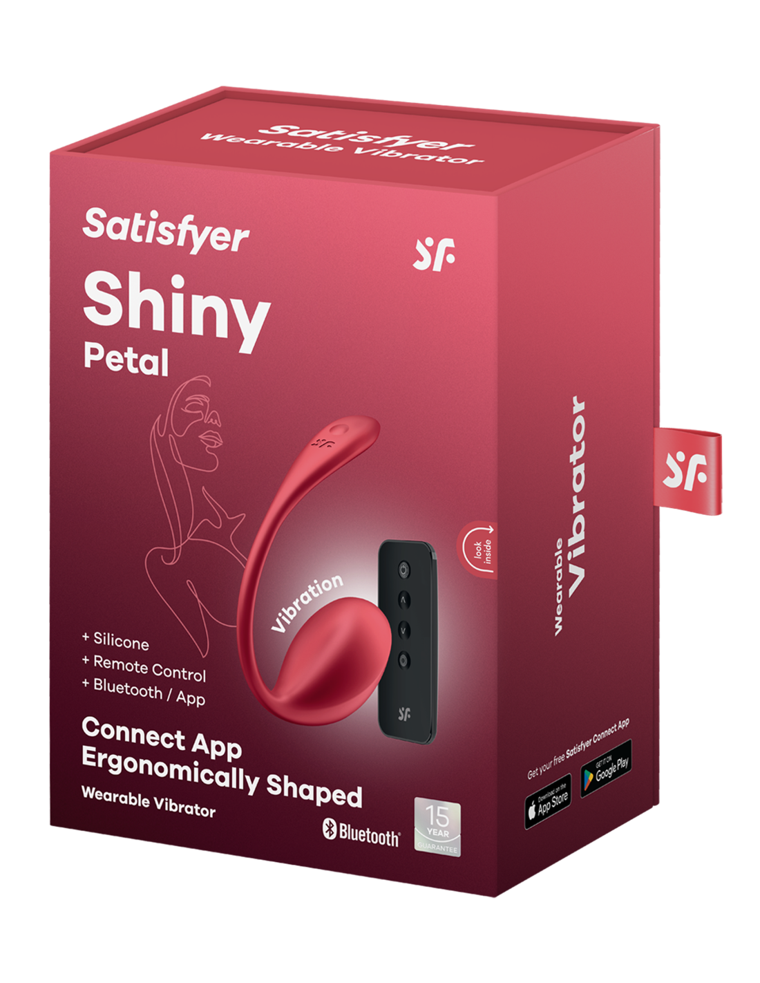 Estimulación del punto G portátil, ¡todo el día! Con un cable en el interior, que permite doblar y ajustar ligeramente el Pétalo Brillante, este vibrador portátil es ideal para llevar en movimiento e ideal para parejas o solteros a los que les gusta disfrutar de aventuras fuera del dormitorio. Fácil de ajustar y cómodo de llevar, el Pétalo Brillante viene equipado con un shaft suave, ¡seguro que lo satisfará! Habilitado para Bluetooth, el Shiny Petal se conecta a la galardonada aplicación gratuita Satisfyer Connect, lo que le brinda la opción de tener un control completo del potente motor y personalizar realmente su placer. ¿No tienes teléfono? ¡No hay problema! ¡El Pétalo Brillante viene con un control remoto adicional! El Shiny Petal está hecho de silicona segura para el cuerpo, es recargable e impermeable (IPX7). ¡Brilla intensamente!